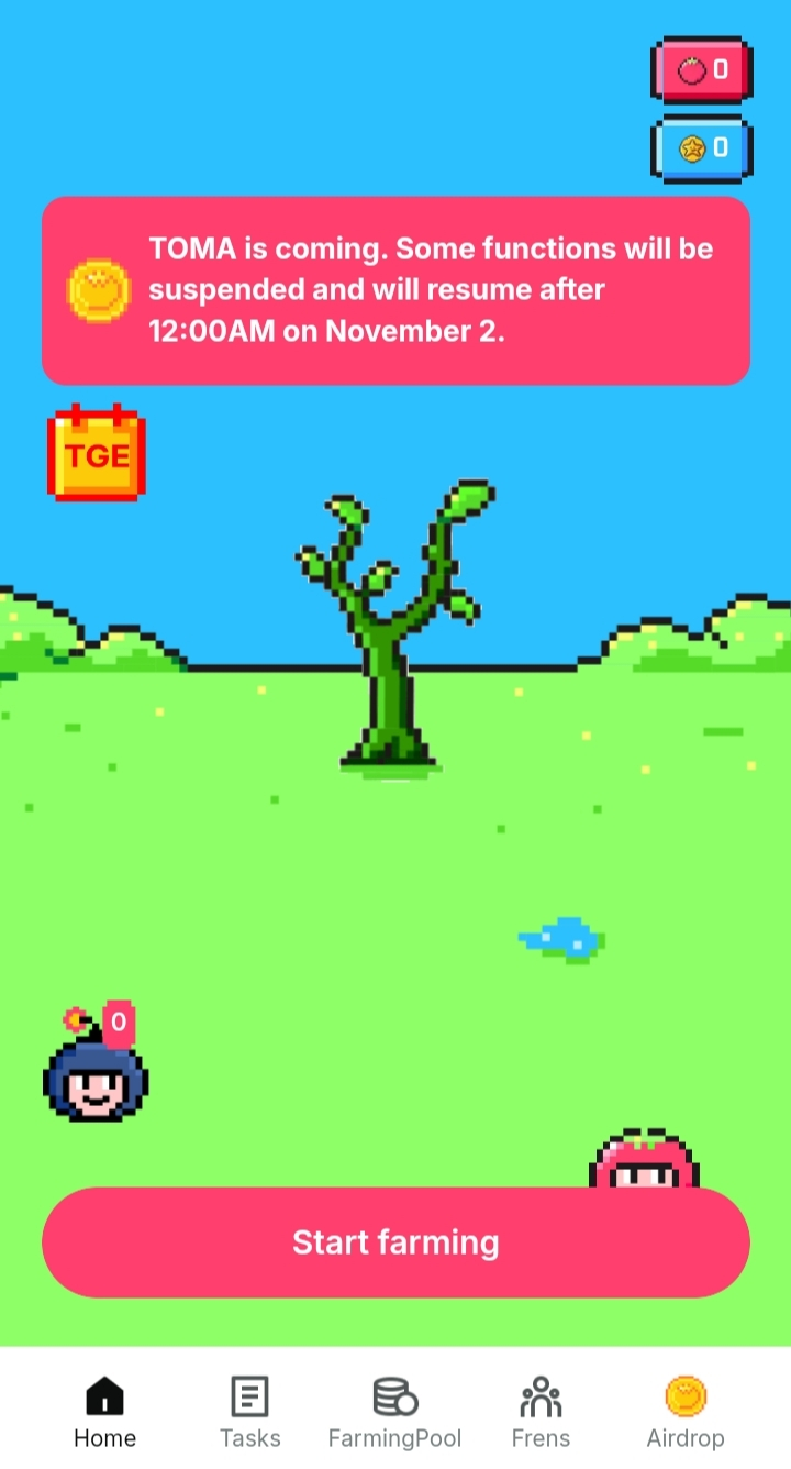 Dopo il periodo di manutenzione, i token TOMA diventeranno accessibili agli utenti idonei. Puoi aspettarti di vedere il tuo saldo TOMA riflesso nel tuo account entro il 2 novembre alle 00:00 HRS. Questo segna l'introduzione ufficiale dei token TOMA sulla piattaforma.