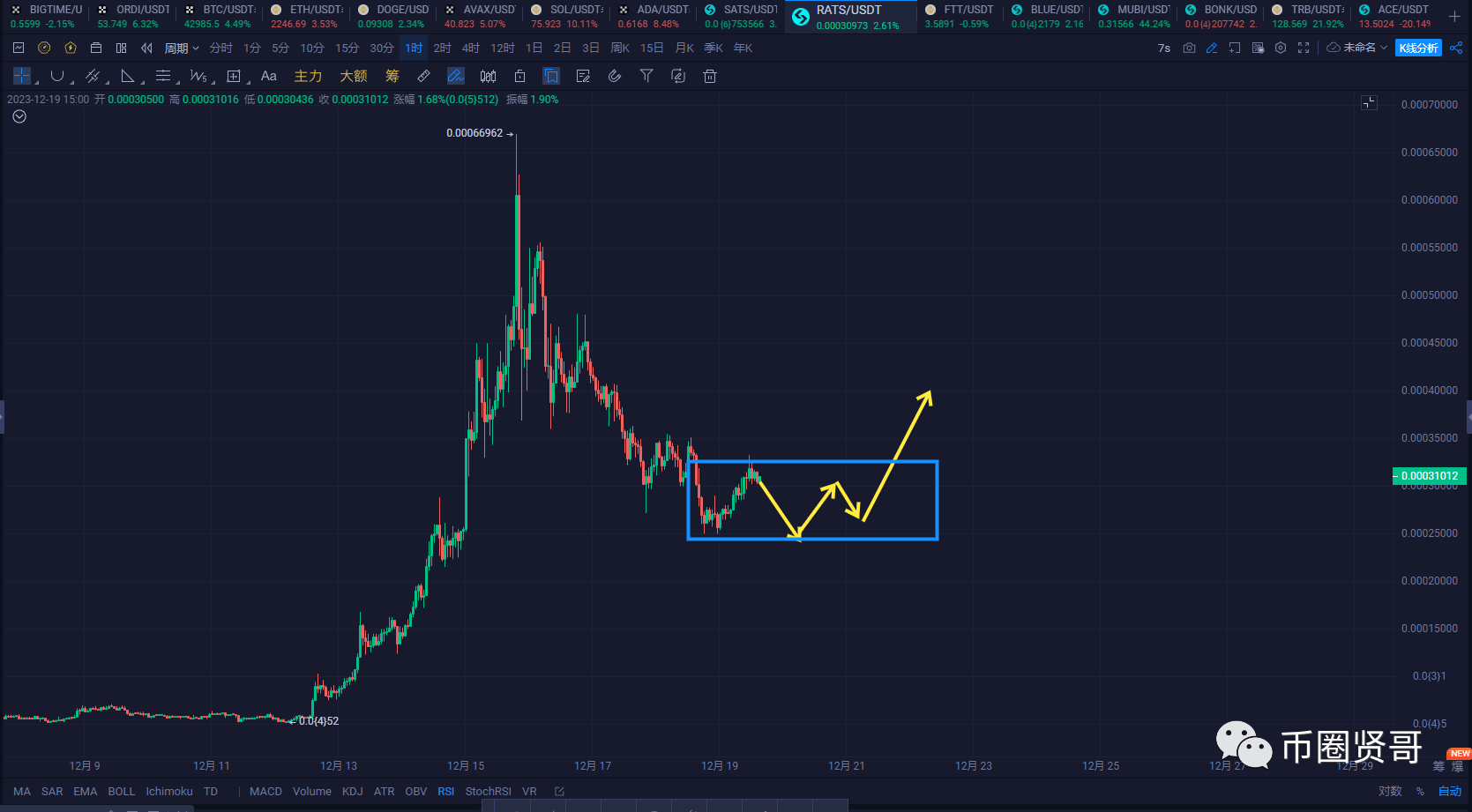Secondo la mia esperienza, è molto probabile che il prezzo faccia una fase laterale sul fondo, come mostrato nell'immagine, e poi salirà! Credo che l'interesse per le incisioni di Bitcoin non svanirà così rapidamente!