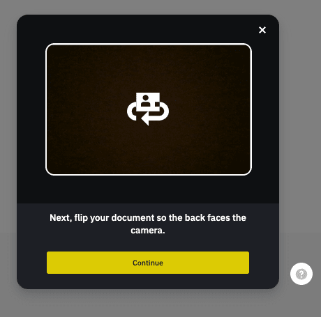 5. Successivamente, dovrai verificare i tuoi documenti d'identità. Puoi scattare una foto con la fotocamera del tuo telefono o caricare foto. Scegli un'opzione e clicca [Continua].
