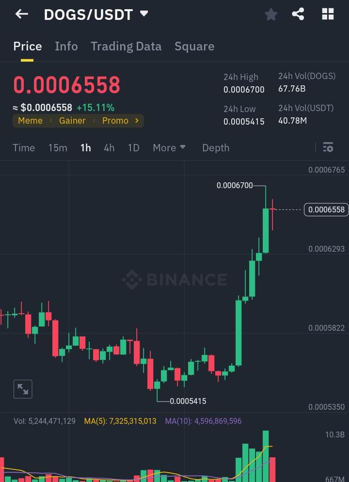 DOGS/USDT, attualmente quotato a $0.0006558 (in aumento del 15,11%), ecco un'analisi e un potenziale approccio al trading:โ ๐๐ฅ๐ข