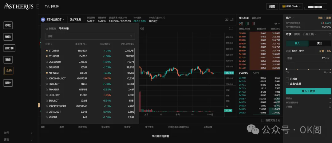 AstherusEx è un DEX che fornisce supporto per la negoziazione degli asset LST, portando gli asset LST in un DEX multifunzionale per consentire ai detentori di asset LST di ottenere profitti significativi attraverso diverse strategie di mercato. Questo settore è adatto a trader maturi e profittevoli nel mercato.