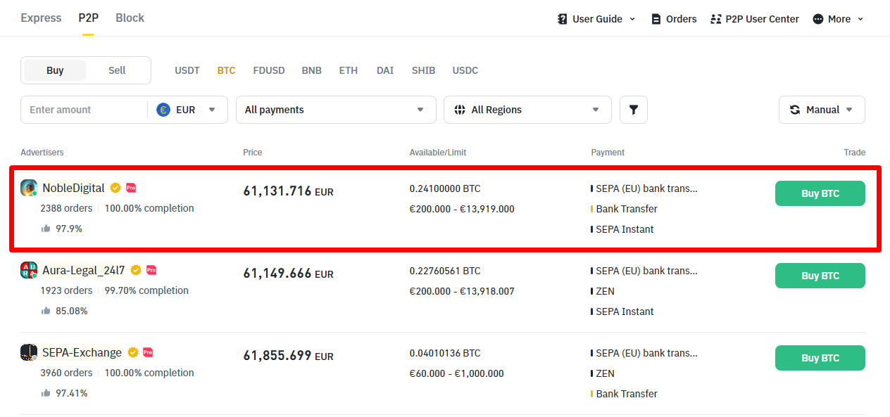 · Reputazione dell'acquirente: controlla sempre la reputazione e il tasso di completamento delle transazioni degli acquirenti sulle piattaforme P2P per garantire una transazione sicura.