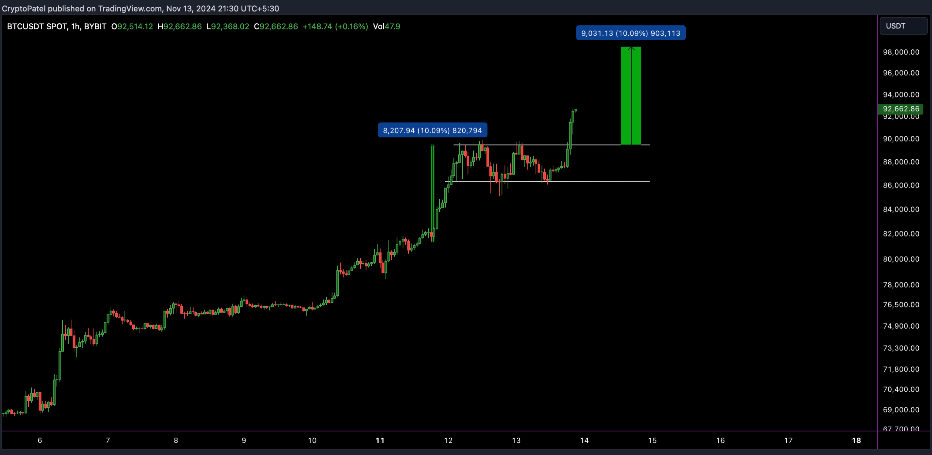 Bitcoin ha recentemente formato un pattern "bull flag", un popolare schema tecnico che indica una potenziale continuazione di un trend rialzista. Dopo un periodo di consolidamento, Bitcoin è uscito da questo flag, segnalando in genere un rinnovato slancio al rialzo. Ecco uno sguardo più da vicino a cosa significa e perché gli analisti ritengono che $ 100K potrebbero essere all'orizzonte.
