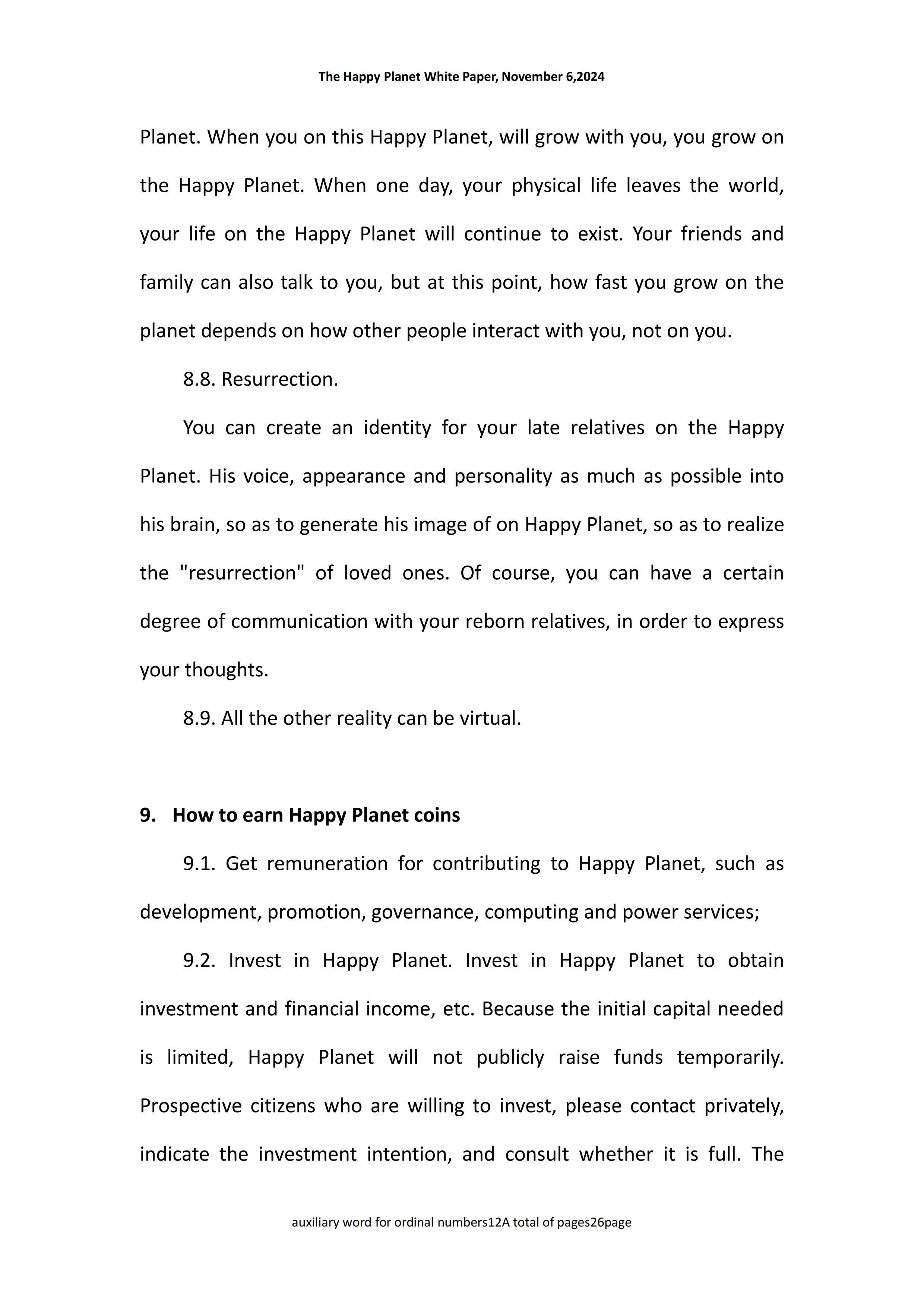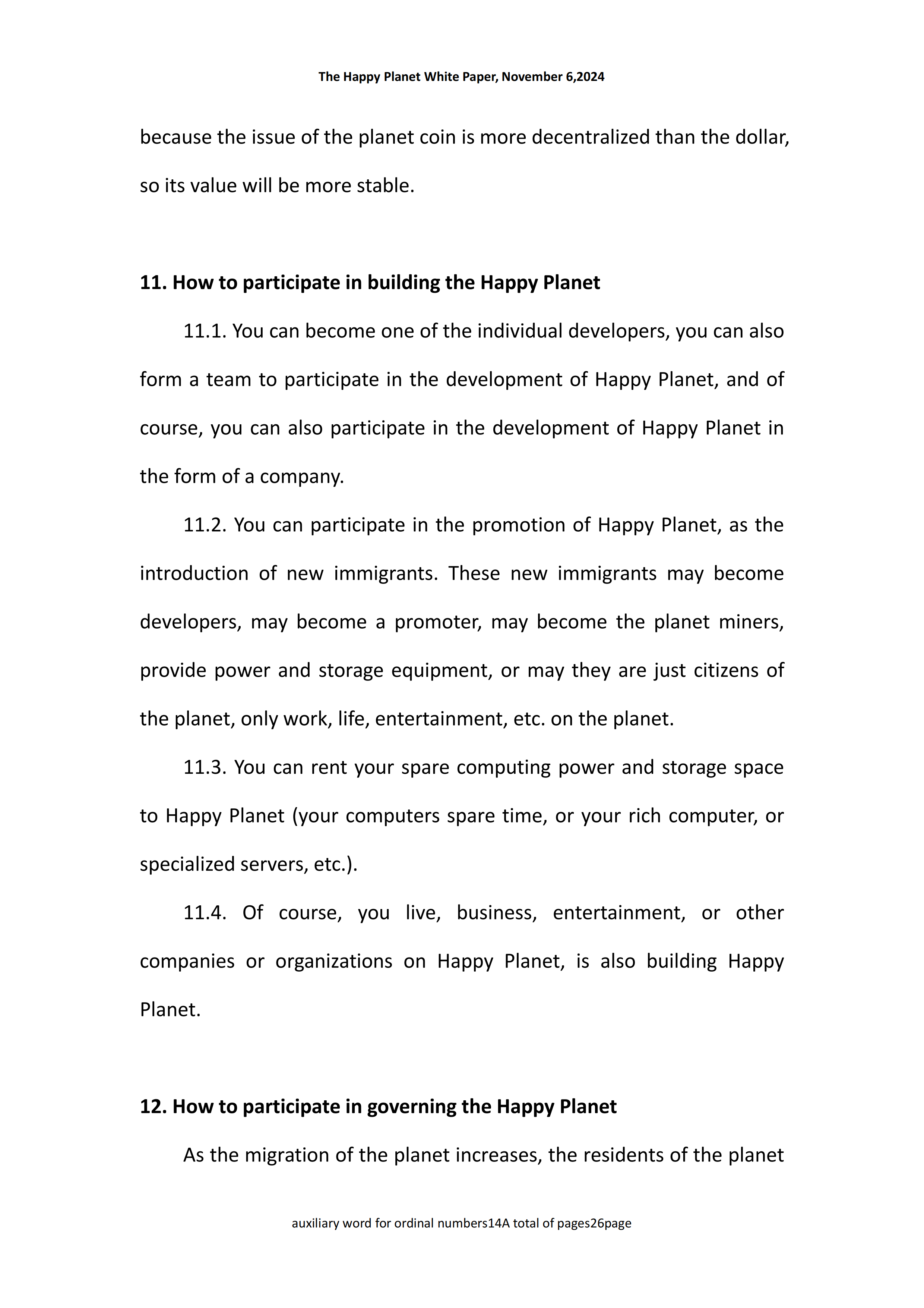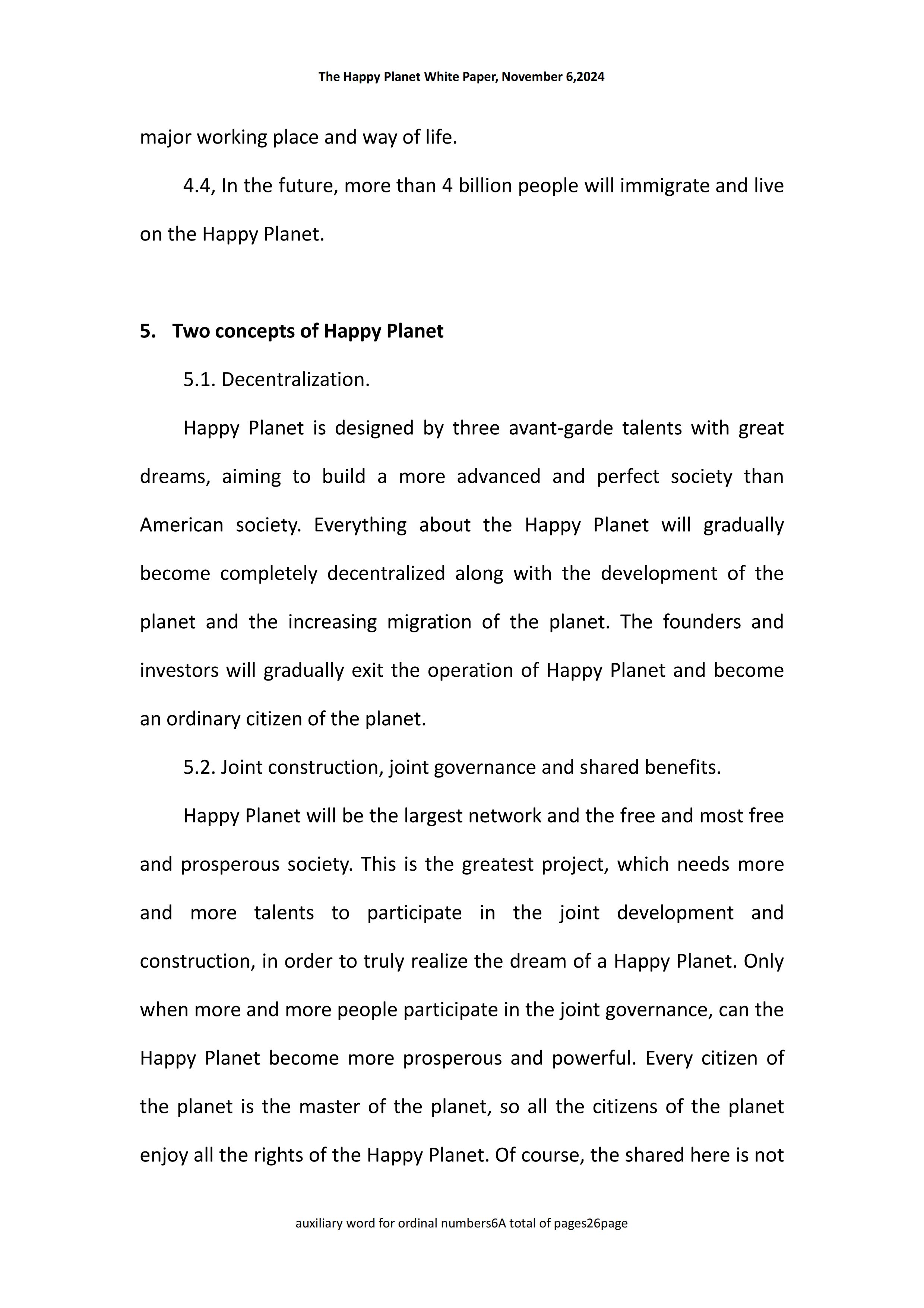 Happy Planet è una comunità metaverso creata sulla base di blockchain, WEB3 e tecnologia AI. Puntiamo a creare un mondo più democratico, libero, aperto, vibrante e prospero degli Stati Uniti. Il White Paper di Happy Planet è una panoramica di base dell'intero pianeta.