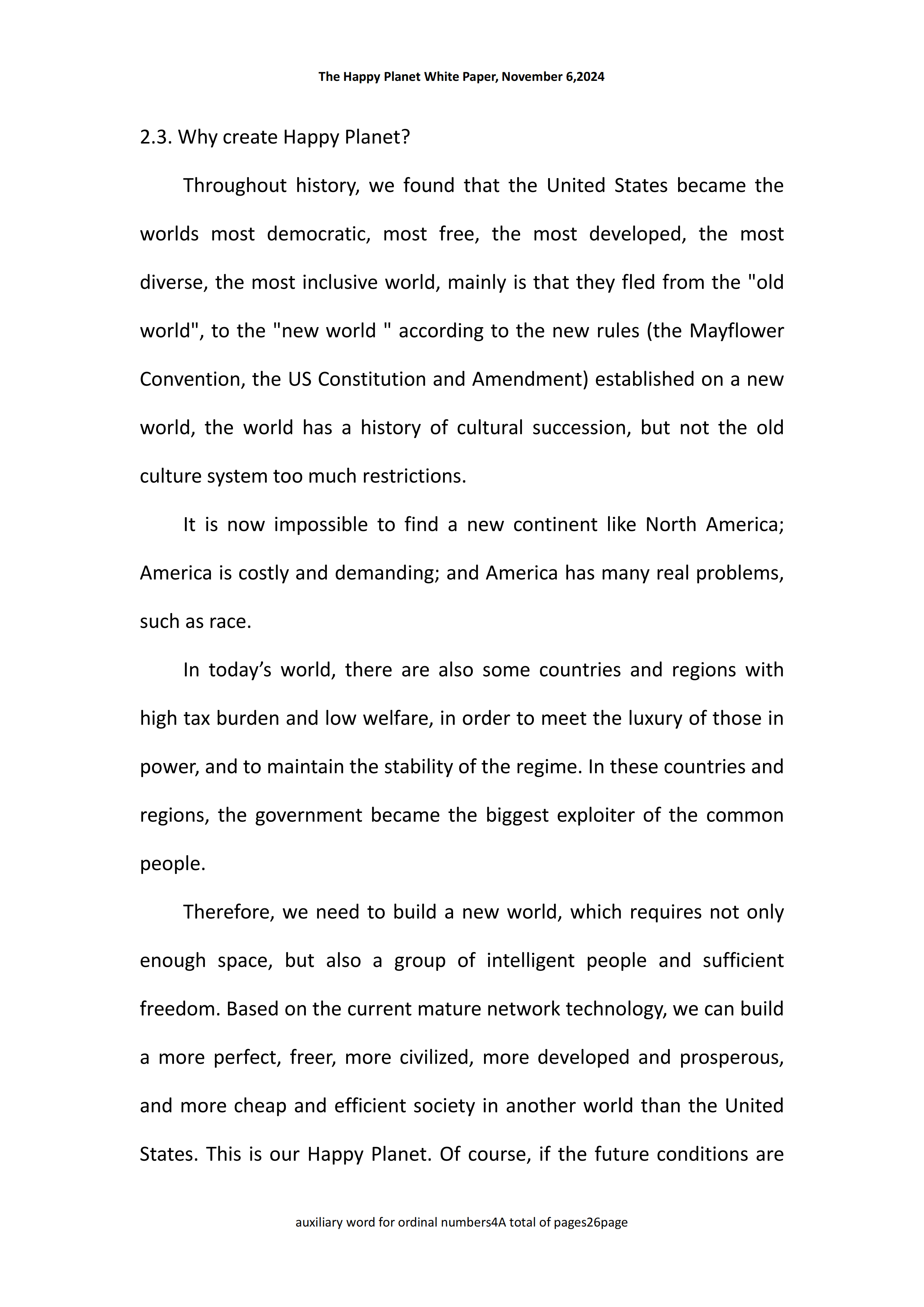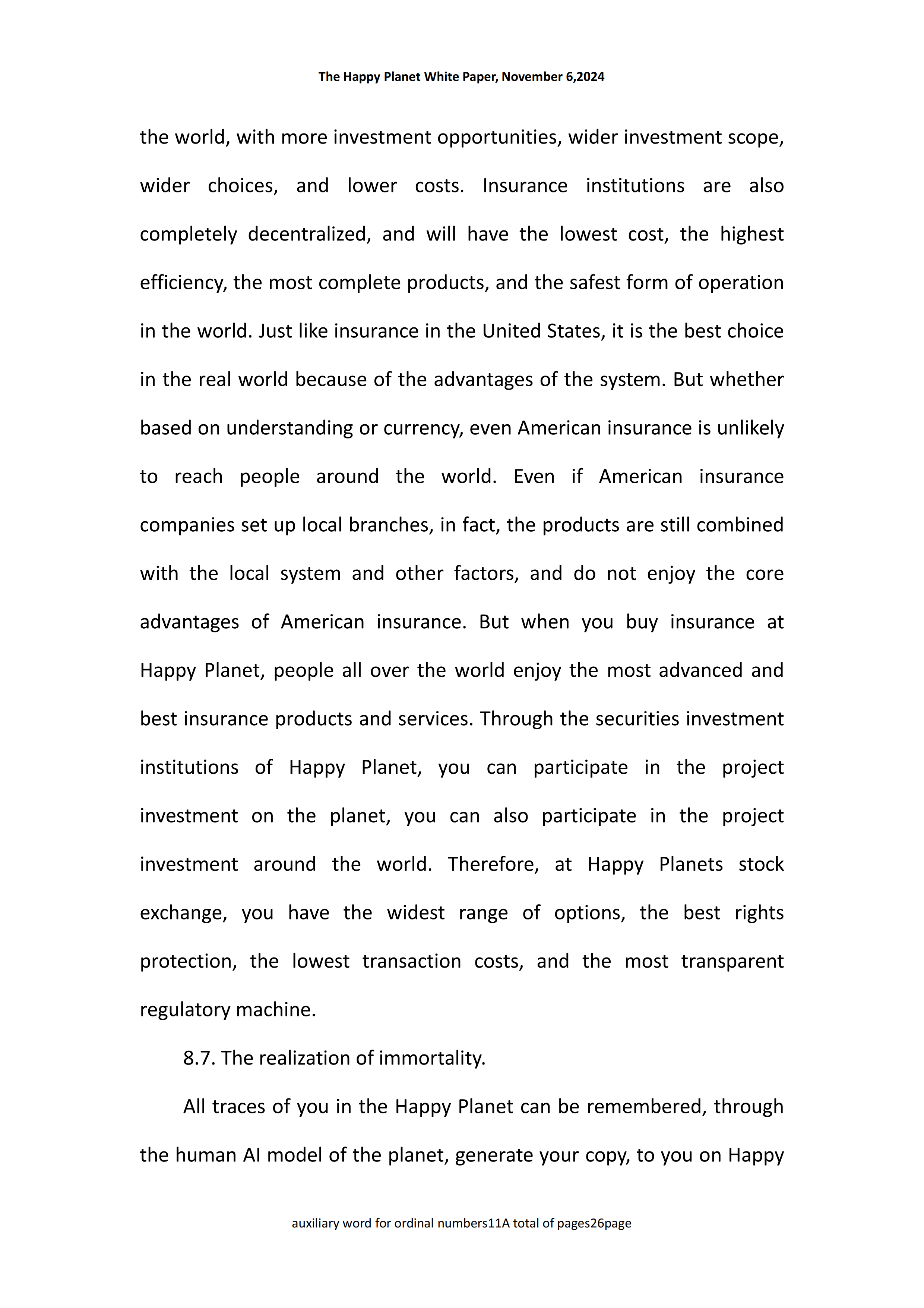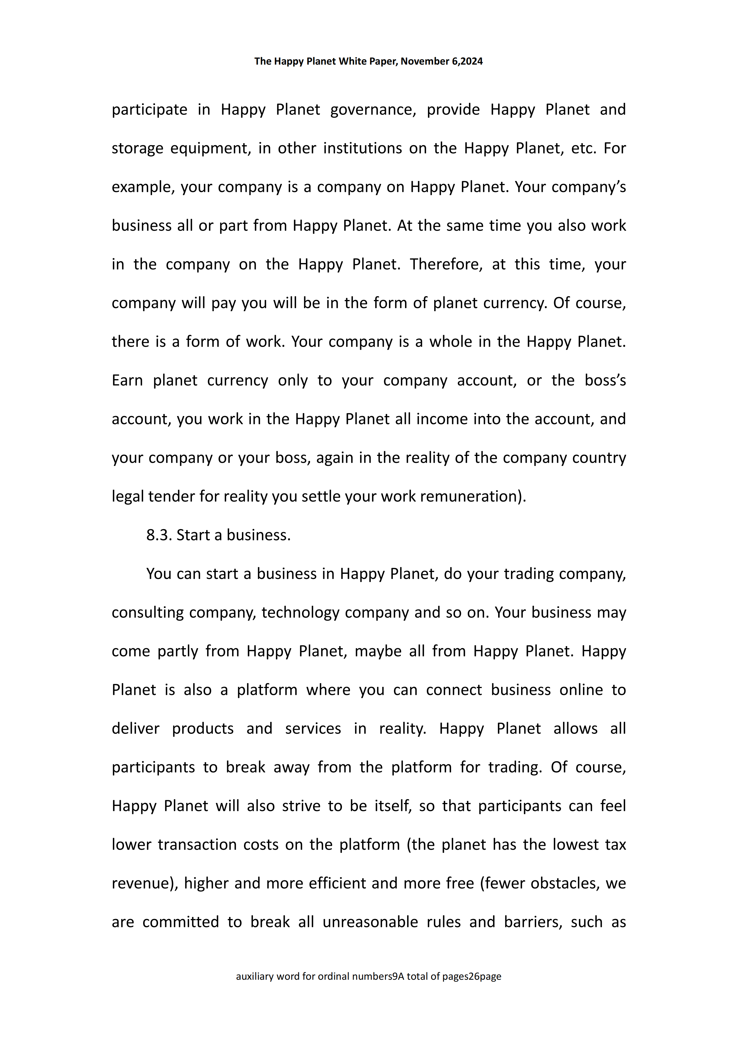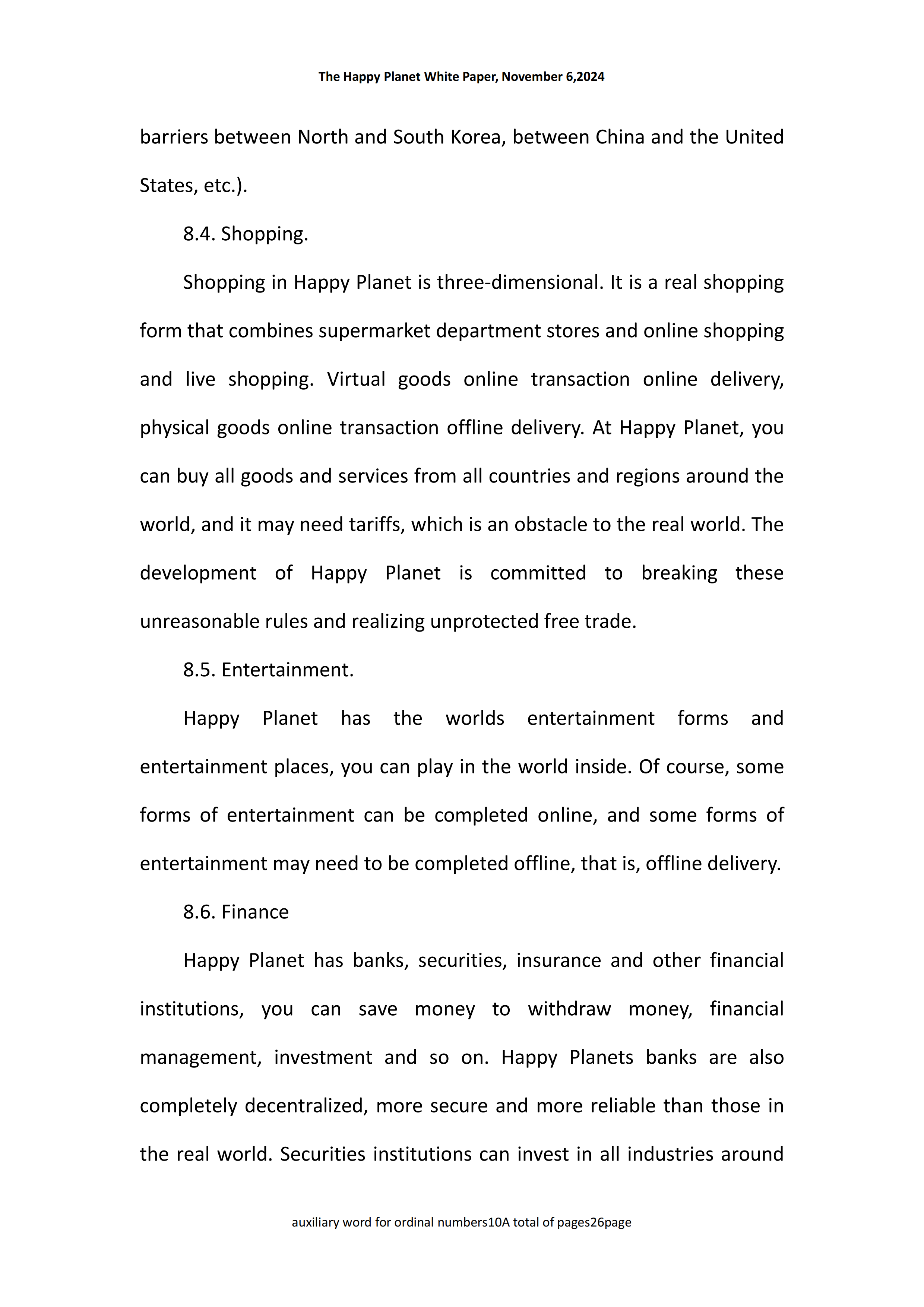 Happy Planet è una comunità metaverso creata sulla base di blockchain, WEB3 e tecnologia AI. Puntiamo a creare un mondo più democratico, libero, aperto, vibrante e prospero degli Stati Uniti. Il White Paper di Happy Planet è una panoramica di base dell'intero pianeta.
