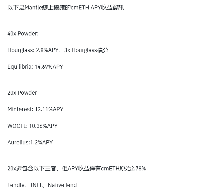 La settimana scorsa ho pubblicato un articolo, il link è qui: Riepilogo dei rendimenti APY su cmETH. Un operatore esperto noterà l'esistenza di un divario informativo sui rendimenti di staking nel mercato.