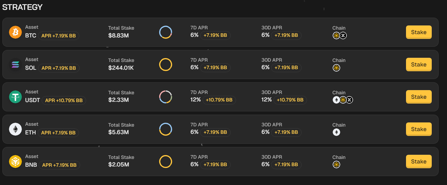 Una delle caratteristiche distintive di BounceBit sono i suoi prodotti Stablecoin Yield, perfetti per gli utenti che cercano investimenti a basso rischio.