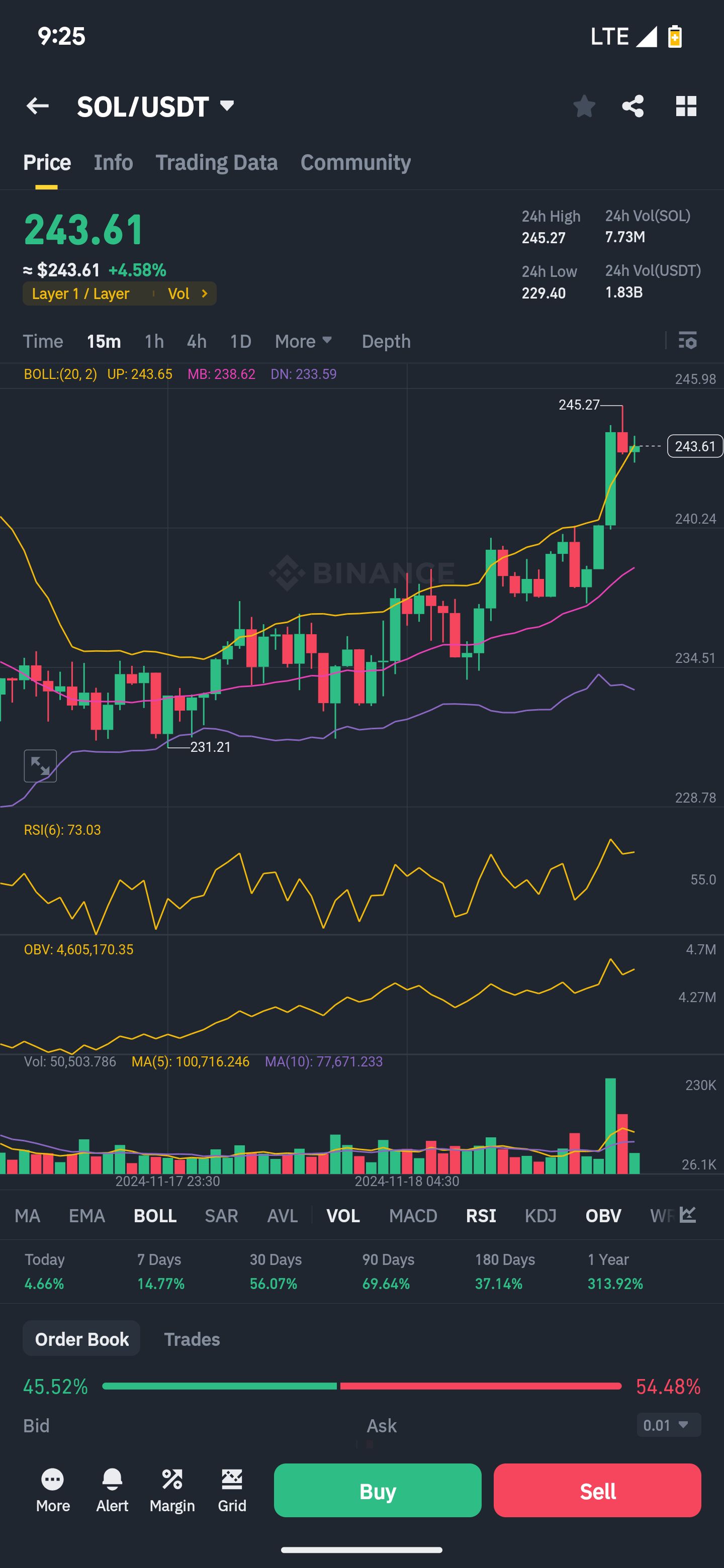 Prezzo attuale ($SOL /USDT): $243,61 (+4,58% in 24 ore)