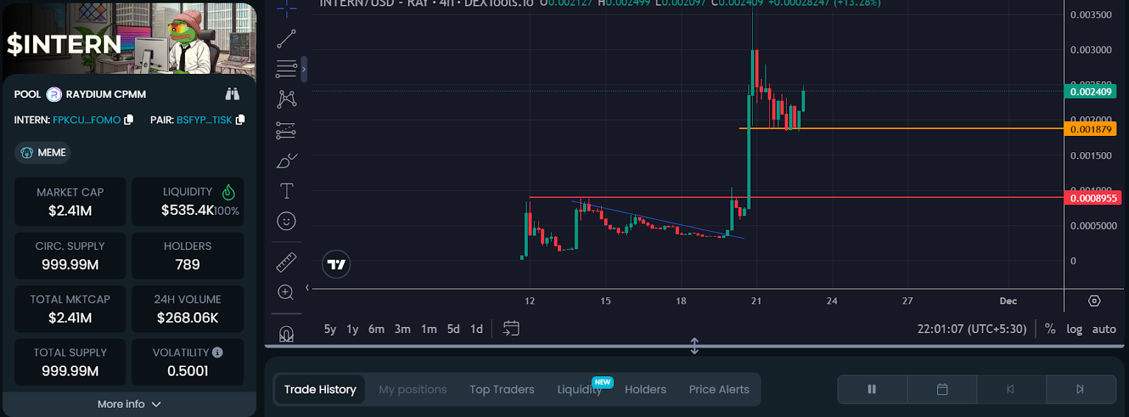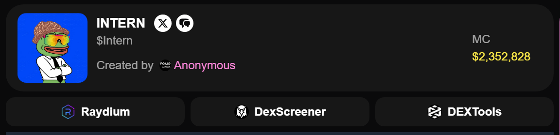 Quando $INTERN è stato lanciato, la sua capitalizzazione di mercato era di $2M, e si dice che miri a $100M!