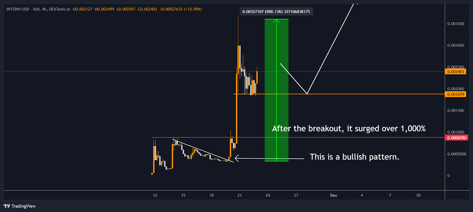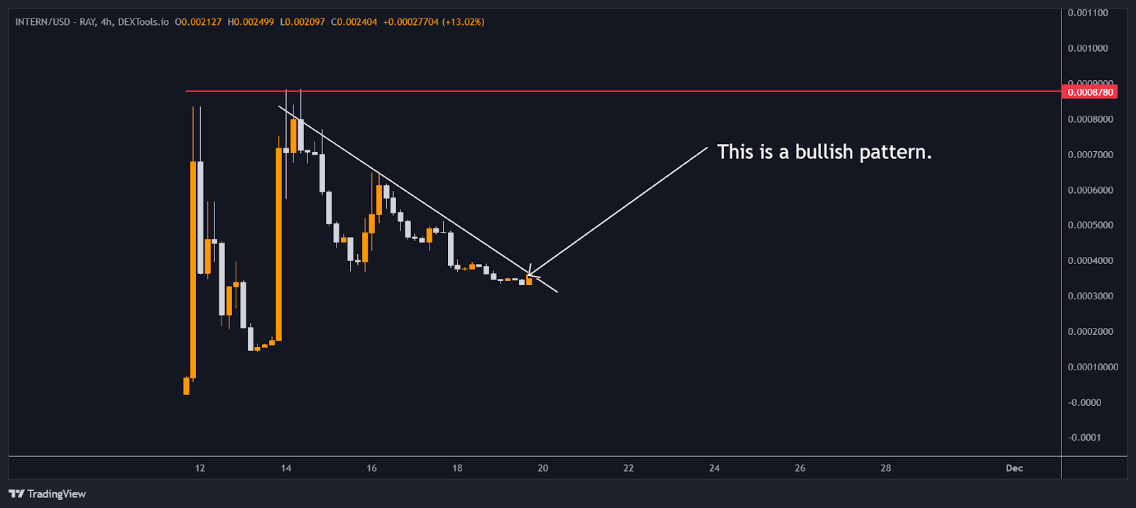 Appena ho controllato, ho notato qualcosa di interessante: si stava formando un modello di rottura rialzista. Questo è esattamente il tipo di configurazione che cerco quando faccio movimenti nel mercato. Il modello era forte, quindi ho deciso di entrare e ho comprato $INTERN subito.