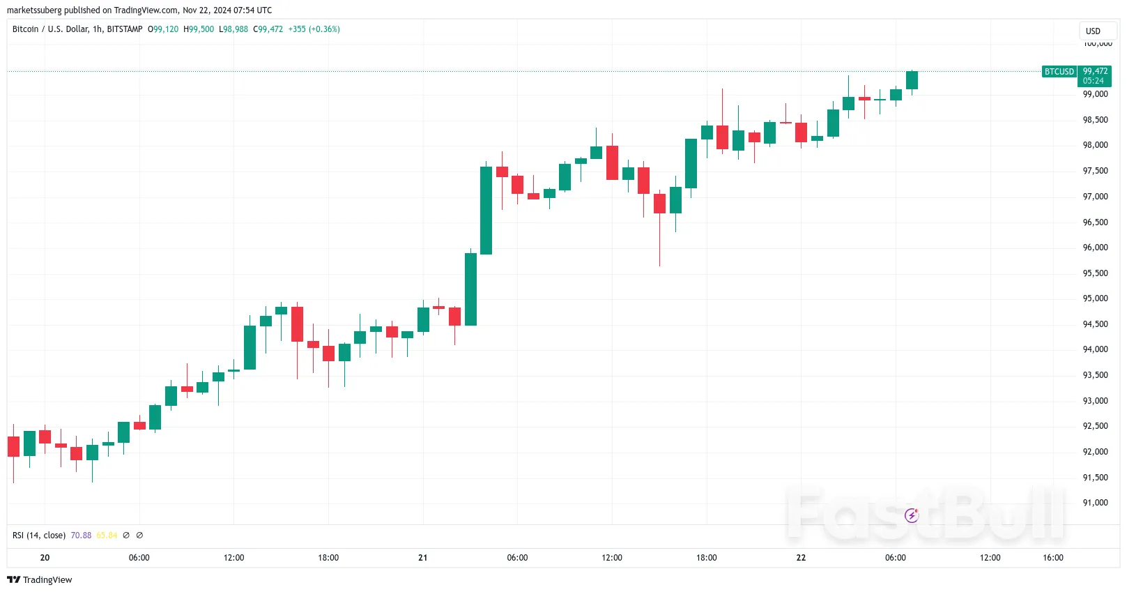 Il 22 novembre il Bitcoin era entro l'1% dei 100.000 dollari, mentre gli investitori "masticavano" gli ultimi ordini di vendita.