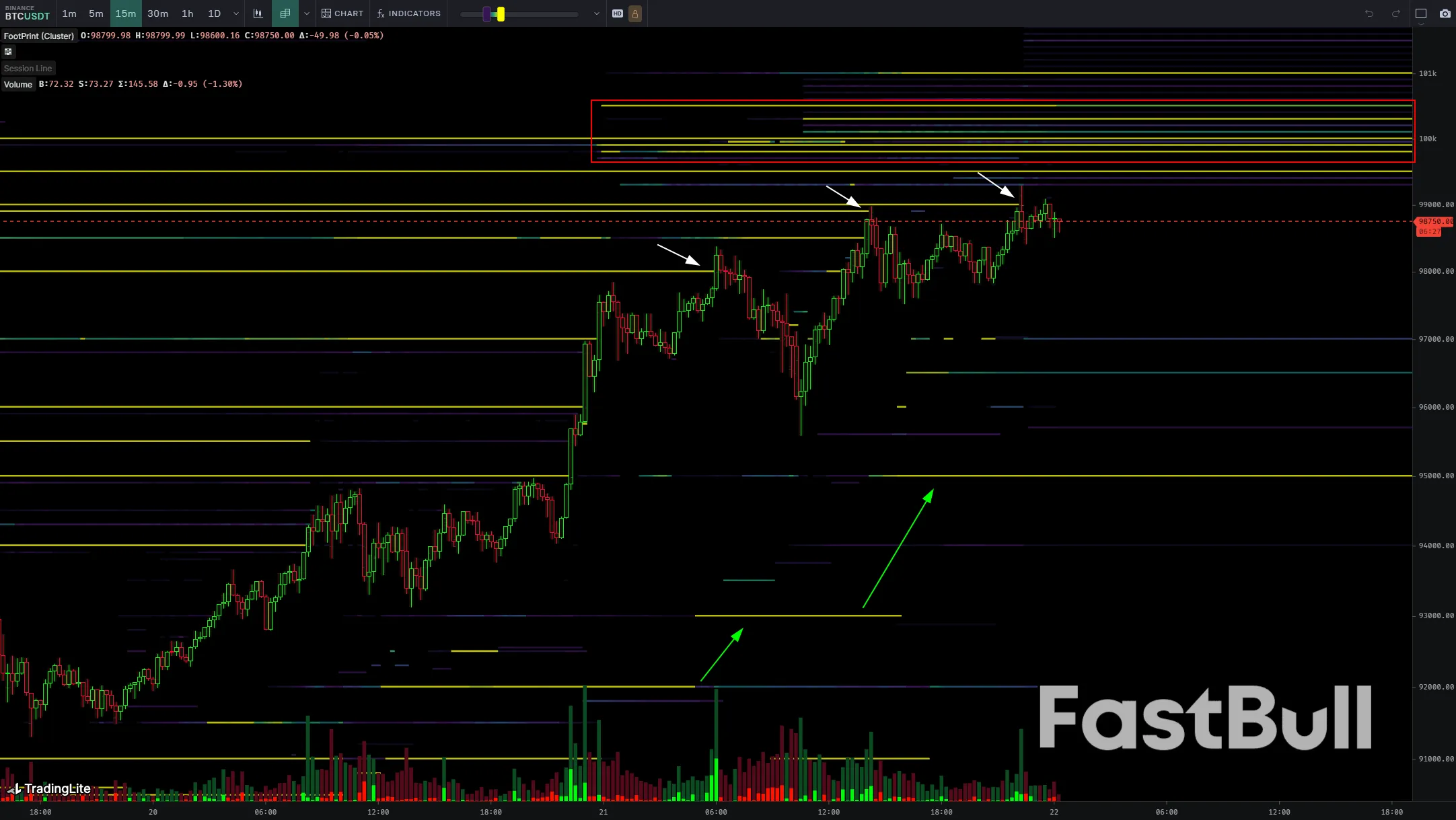 Il grafico allegato mostra la scala della domanda raggruppata nell'area superiore dei 99.000 dollari sul portafoglio ordini di Binance.