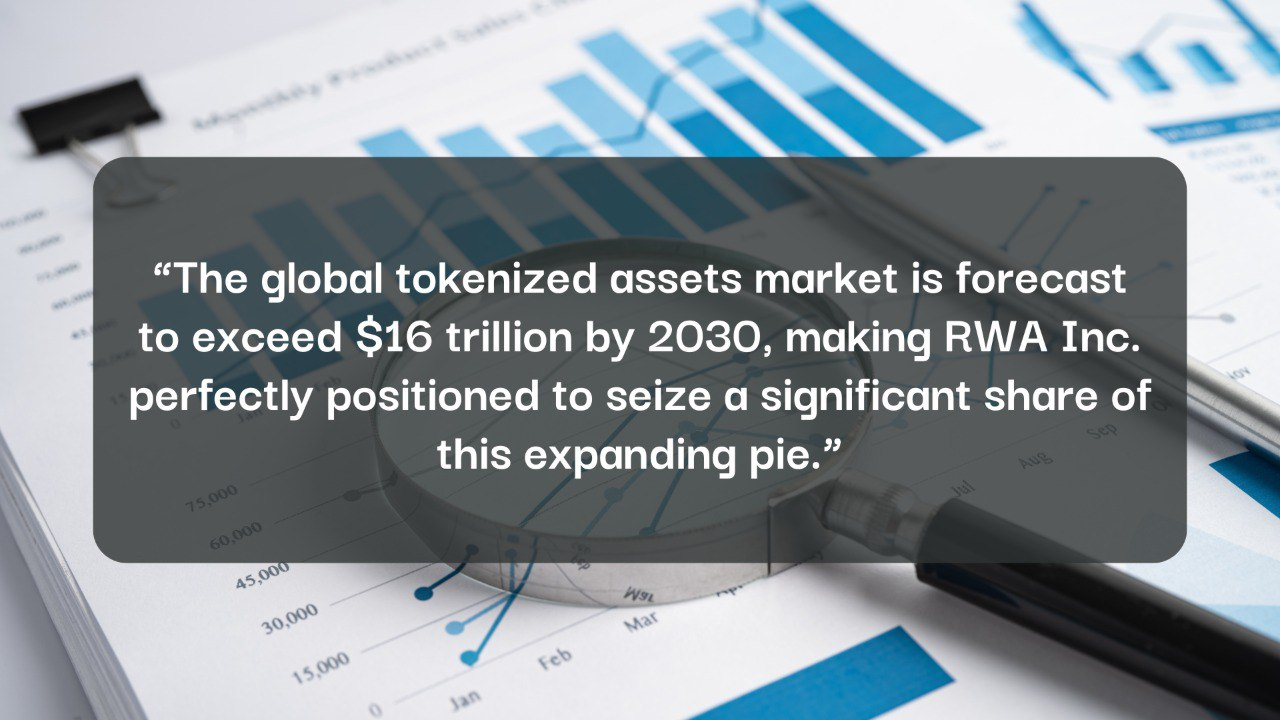 Il mercato globale degli asset tokenizzati è previsto superare i 16 trilioni di dollari entro il 2030, rendendo RWA Inc. perfettamente posizionata per cogliere una significativa fetta di questa torta in espansione.