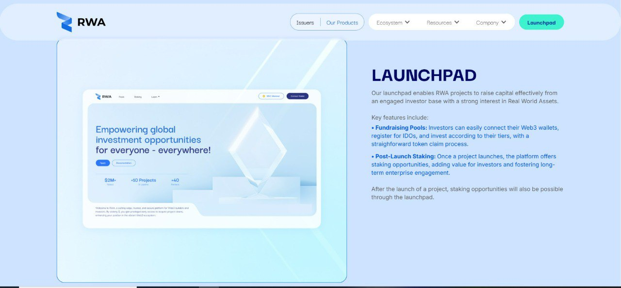 Il suo Launchpad e Marketplace affrontano inefficienze chiave nella finanza tradizionale sfruttando il potenziale trasformativo della blockchain.