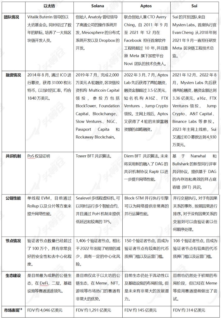 A giudicare dalla situazione del team e dei finanziamenti, anche se Ethereum e Solana, in quanto pionieri delle prime catene pubbliche, sembrano avere un certo divario con le nuove catene pubbliche come Aptos e Sui, la tecnologia blockchain accumulata dai primi due come pionieri. sono ancora fuori dalla portata di questi ultimi due.