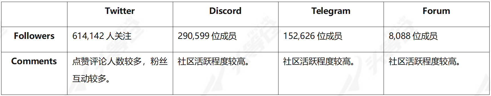 A partire dall'11 novembre 2024, la piattaforma di social media di Aptos è di dimensioni maggiori, ha un numero maggiore di fan e ha più interazioni. La community è ampia e molto attiva e i contenuti della comunicazione si concentrano principalmente sui token di progetto e sul successivo sviluppo dell’ecosistema. Il forum di governance è molto attivo e il contenuto della comunicazione si concentra principalmente sullo stato attuale dello sviluppo del progetto, sui successivi aggiornamenti tecnologici del progetto e sulle direzioni di sviluppo.