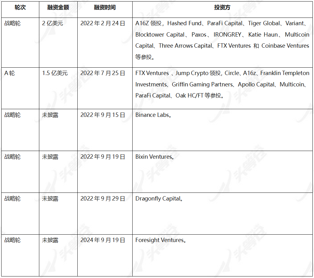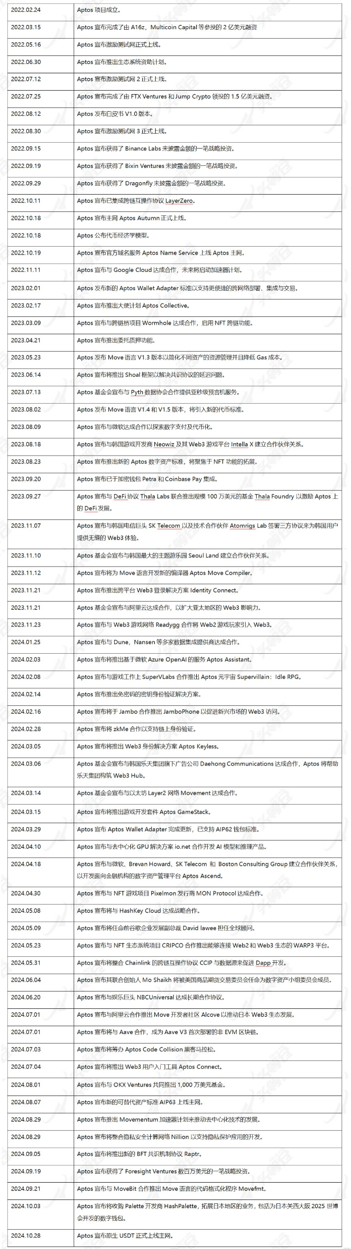 In termini di finanziamento, al 7 novembre 2024, Aptos ha completato 6 round di finanziamento. Secondo le informazioni di finanziamento divulgate, Aptos ha raccolto 350 milioni di dollari per una valutazione di 2,75 miliardi di dollari prima che la rete principale venga messa online nel 2022. successivamente ha condotto anche 4 round di finanziamento strategico con importi di finanziamento non divulgati. Gli investitori di Aptos sono tutti fondi di investimento di primo livello nel settore, tra cui Binance Labs, Dragonfly Capital, A16z, Multicoin Capital, Circle, Coinbase Ventures, ecc. L’ultimo round di finanziamento è stato completato il 19 settembre 2024, quindi si stima che il progetto stesso sia ancora relativamente ben finanziato.
