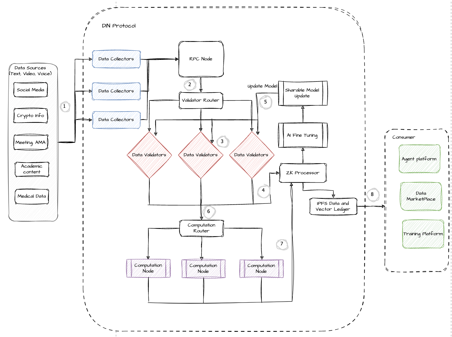 DIN è stato creato sulla base della rete di intelligenza dei dati (Data Intelligence Network), con l'obiettivo di consentire a tutti di elaborare dati per l'AI e ricevere compensi.