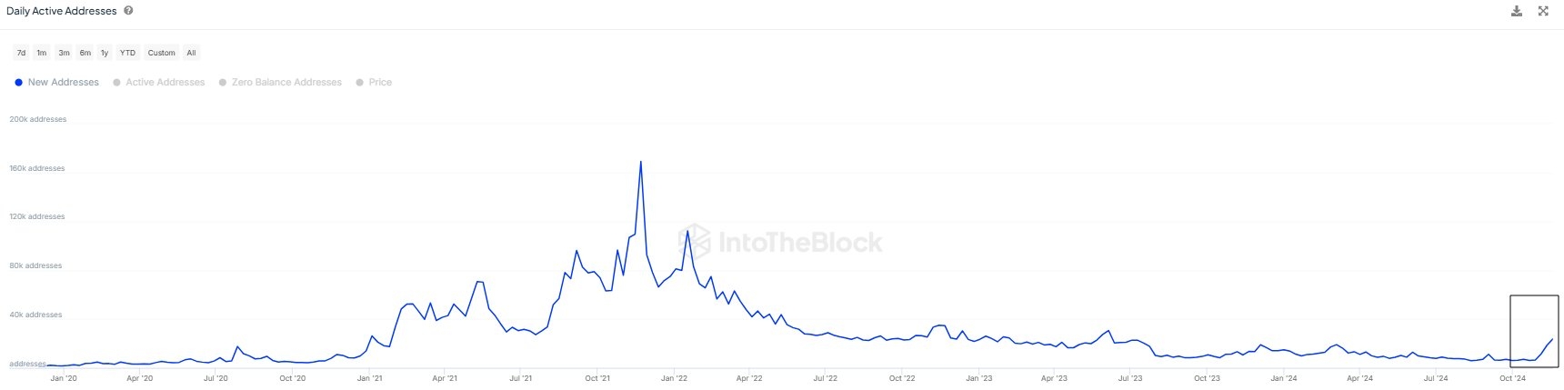 L'aumento della metrica è avvenuto mentre il prezzo dell'asset ha assistito a un rally oltre la soglia di $1. È interessante notare che, nonostante il fatto che la moneta abbia visto un raffreddamento da questo picco negli ultimi giorni, i Nuovi Indirizzi hanno comunque mantenuto la loro traiettoria ascendente.