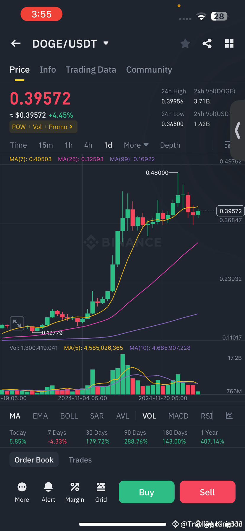 🔝 Today’s price: If DOGE is trading at $0.4110, your investment would now be worth an impressive $16,105.