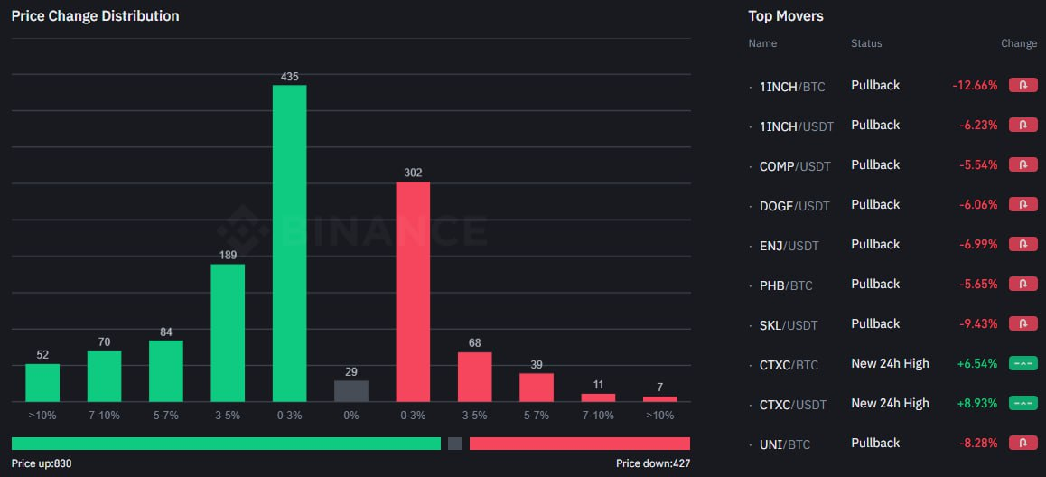 THE, ANS e AMP stanno guidando il mercato come i maggiori guadagni, mostrando una performance impressionante. Bitcoin è aumentato con un forte volume dopo una correzione netta, segnalando una rinnovata fiducia degli investitori. Nel frattempo, la Dominanza di Bitcoin è in calo, suggerendo che il capitale sta fluendo verso gli altcoin. Il sentiment di mercato è rialzista, presentando opportunità per guadagni significativi in promettenti altcoin.