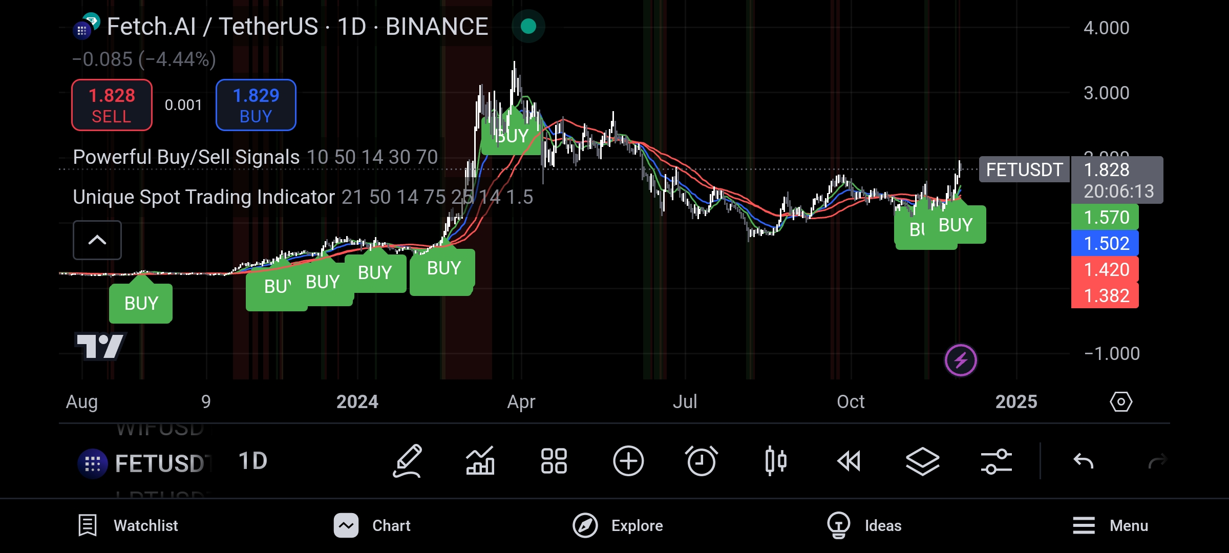 Il grafico giornaliero cattura l'azione reale! FET si sta mantenendo all'interno di un range ristretto, mostrando resilienza nonostante la volatilitĂ piĂš ampia del mercato. Questo movimento confinato potrebbe segnalare un accumulo per un movimento decisivo.