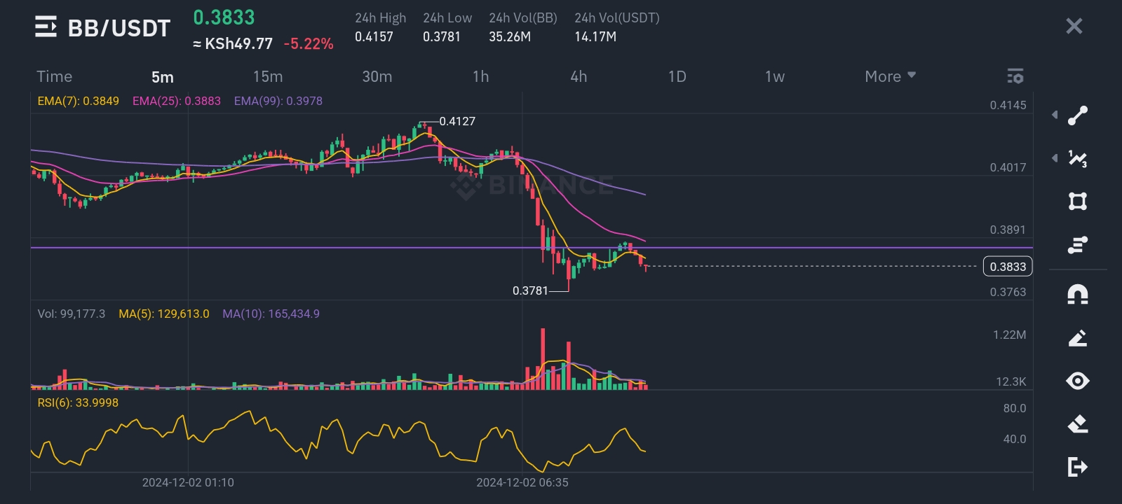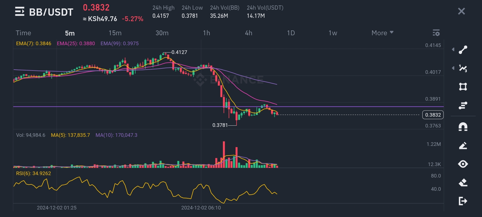 - **Livello di Supporto:** Approssimativamente **$0.3781** (il prezzo è rimbalzato da questo punto).