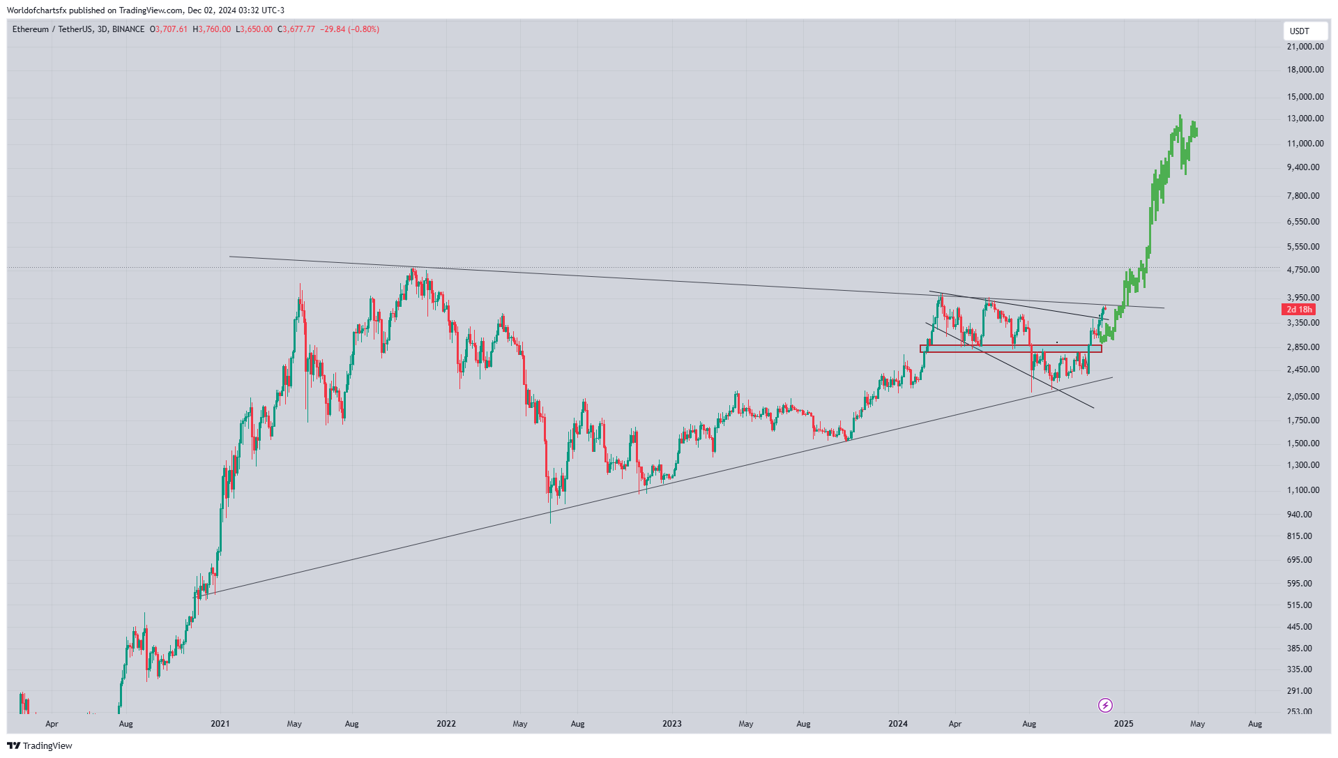 Gli analisti suggeriscono che ETH potrebbe superare la fascia di $4,000 a $4,500 entro l'inizio del 2025, spinto da una maggiore adozione e flussi di investimento. Se le condizioni di mercato rimangono favorevoli, alcune previsioni indicano ETH in fase di test del livello di $10,000 nel prossimo ciclo rialzista. La combinazione di attività DeFi, rinascita degli NFT e aggiornamenti di scalabilità di Layer-2 sosterrà probabilmente il suo slancio.
