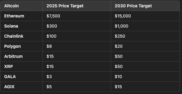 - Guadagno previsto: 3x a 5x entro il 2025. Obiettivo di prezzo: $5,000–$7,500.