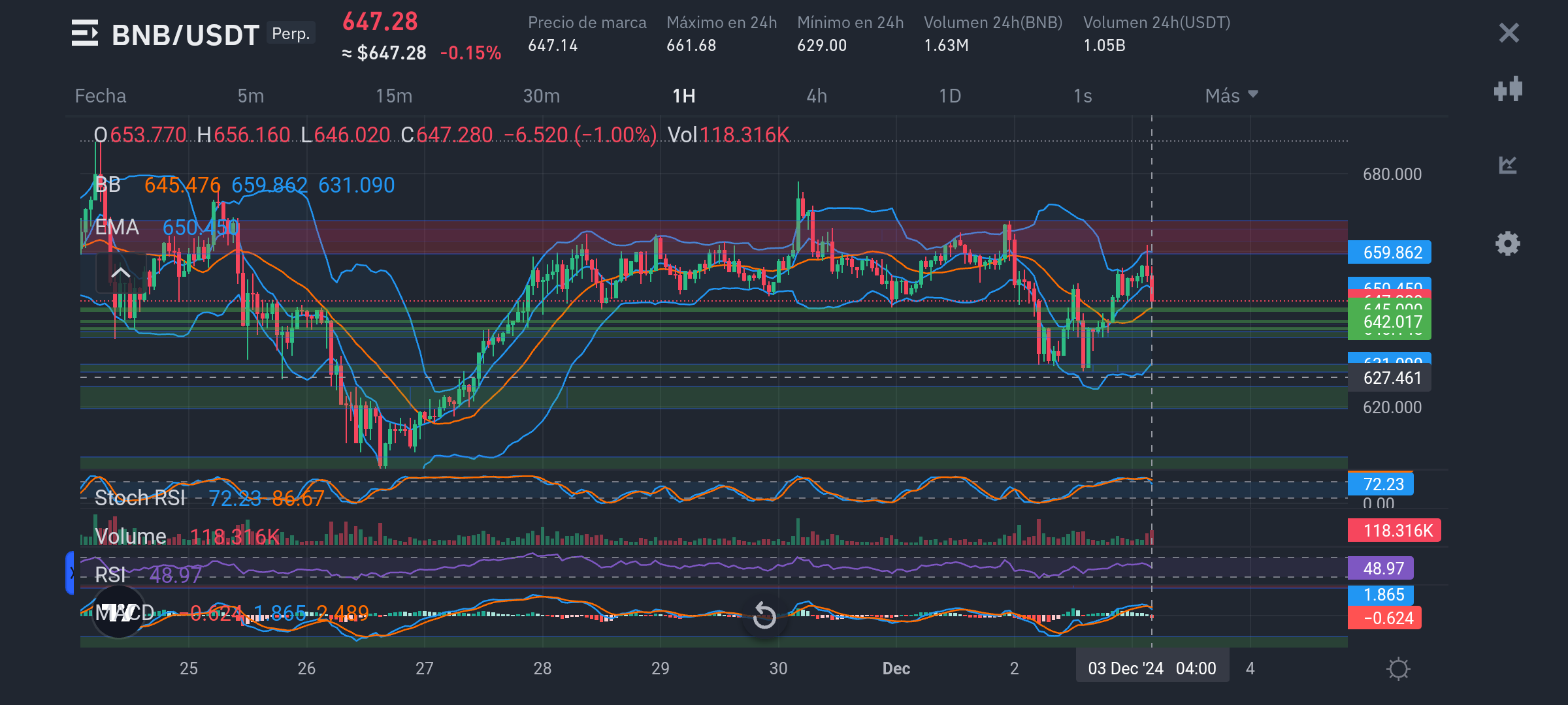 Analisi del grafico 2: BNB/USDT su un intervallo temporale di 1 ora