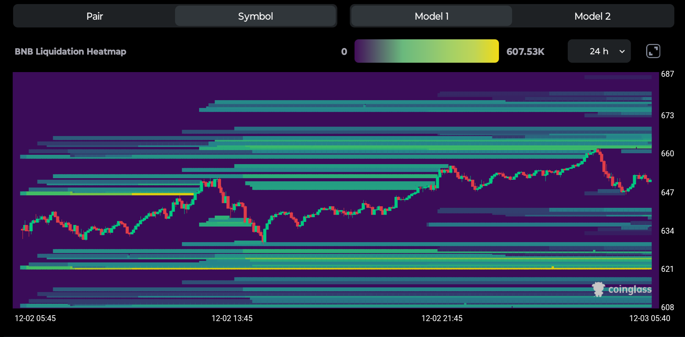 Analisi del grafico 1: Mappa della liquidazione di BNB:
