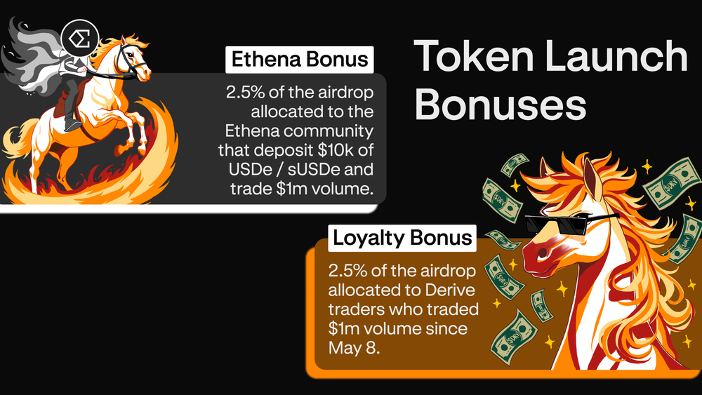 Gli utenti che mettono in staking USDe/sUSDe oltre 10k e hanno un volume di trading superiore a 1m su Derive potranno dividere il 2,5% dell'airdrop di $DRV.