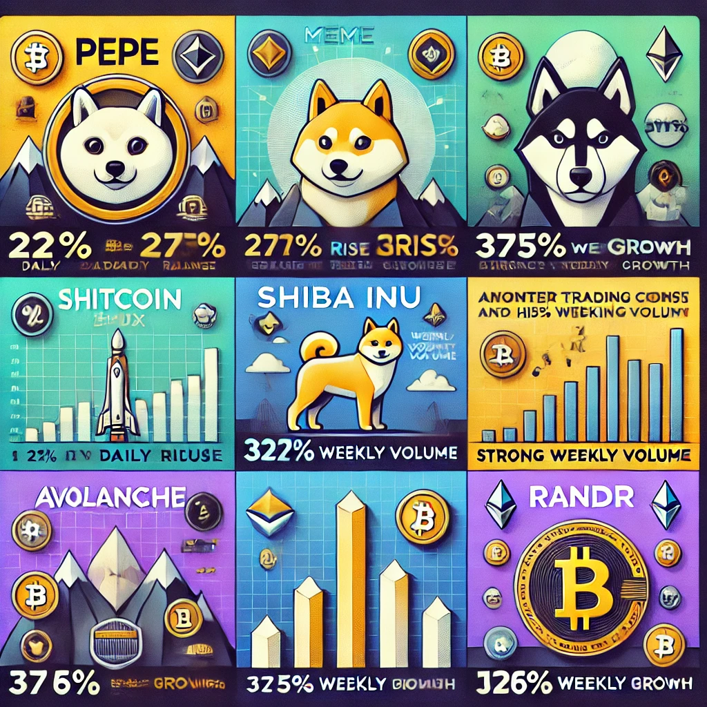 2. Shiba Inu (SHIB): questa popolare moneta meme ha raddoppiato il suo valore di recente e vanta una crescita settimanale del 332%, supportata da un elevato volume di scambi.