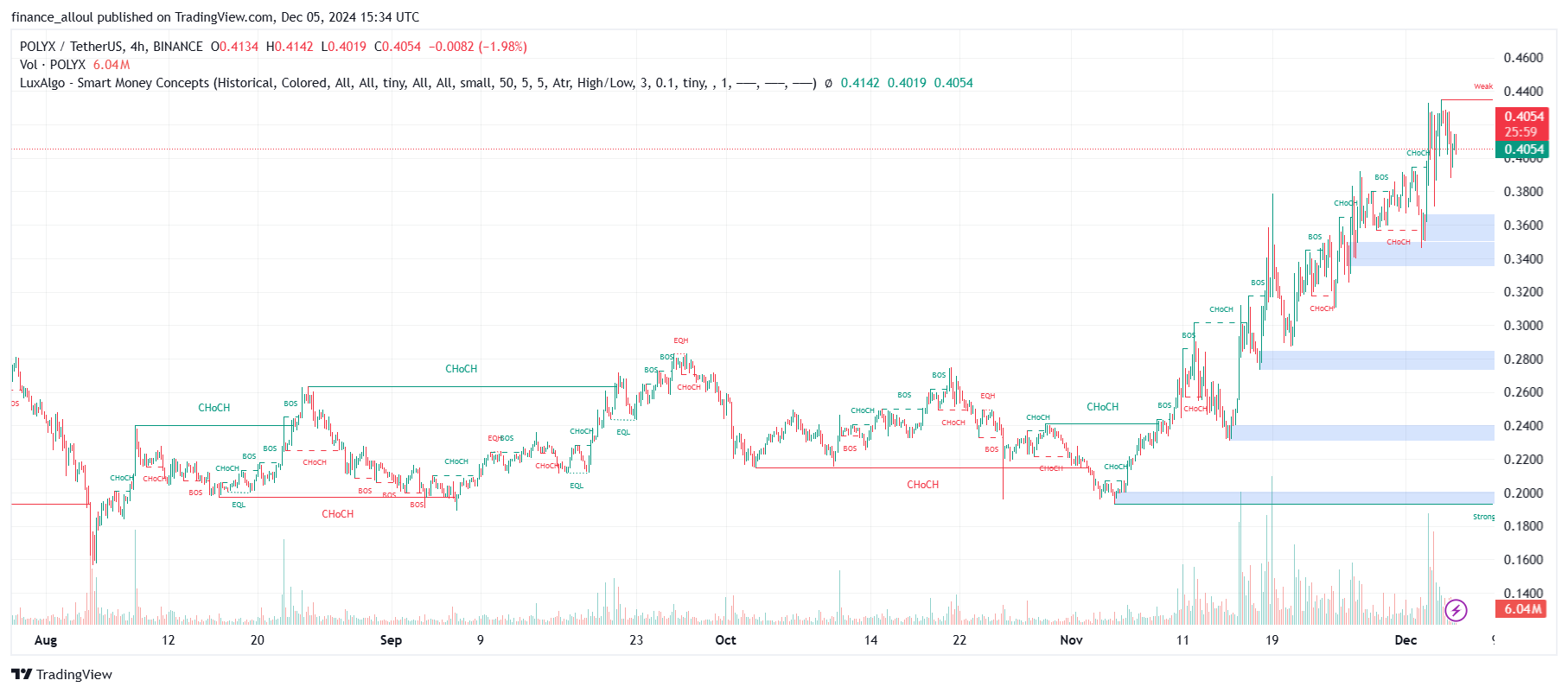 $POLYX ha recentemente mostrato segni di un impressionante slancio rialzista, passando da $ 0,20 a $ 0,4 con un volume crescente. Attualmente, la resistenza principale si trova a 0,45 dollari, ma una correzione verso 0,36 - 0,38 dollari potrebbe fornire un punto di ingresso ideale per gli investitori.