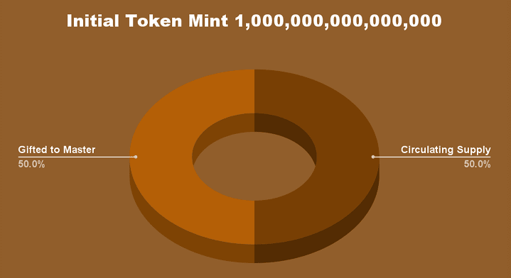 Invece di un approccio originale, abbiamo deciso di seguire le impronte di quelli che ci hanno preceduto, quindi il 50% dei token iniziali coniati sarà regalato al Grande Hosky in persona (se non sai chi è, conosci davvero Cardano?). Anche se non sappiamo cosa diventerà di questi token, abbiamo fiducia che il Master farà buone cose con essi, chissà, questa potrebbe essere la prima volta che il Master è d'accordo con la distruzione dei token. L'altro 50% sarà allocato come mostrato dal seguente grafico: