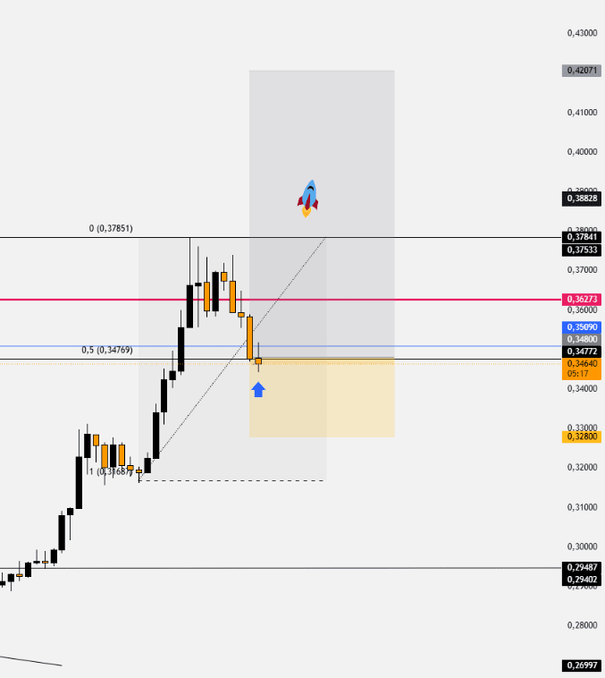 Recentemente, il prezzo $HBAR ha rotto una resistenza chiave a $ 0,29487, che ha alimentato un'impennata a $ 0,37841. Questa mossa ha generato entusiasmo nel mercato poiché indica una tendenza rialzista significativa. Tuttavia, è normale che dopo un rialzo il mercato subisca una correzione o un pullback. In questo caso, si prevede che il prezzo di $HBAR scenderà intorno a 0,34772$, prima di continuare eventualmente la sua ascesa.
