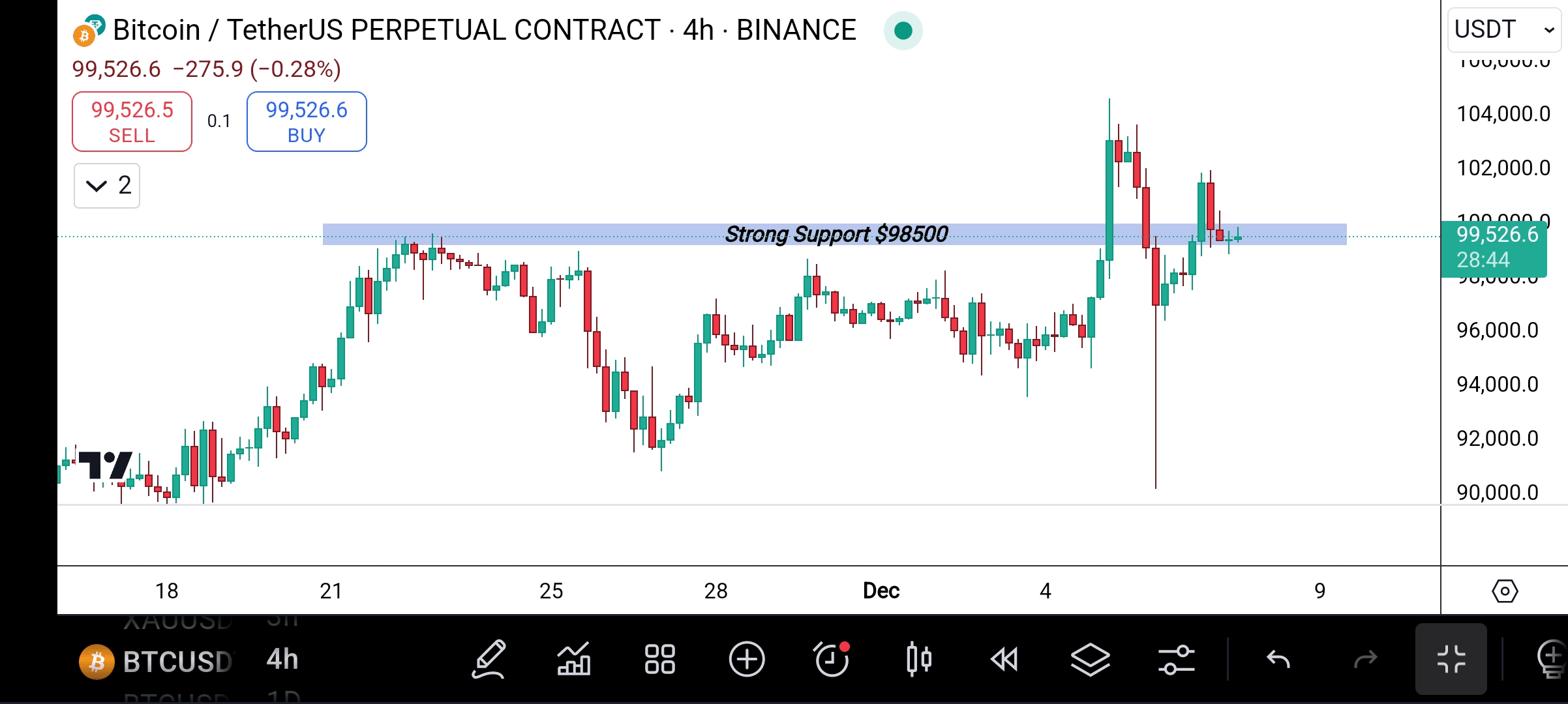 Se BTC non riesce a mantenere il supporto di $98,500, potremmo vedere un ritracciamento verso la zona di $96,000–$95,500.