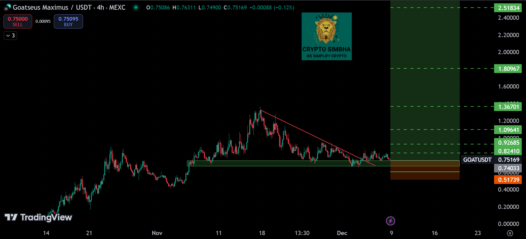Il grafico GOAT/USDT segnala un potenziale inversione di tendenza, con la linea di tendenza ribassista ora rotta. Il prezzo è attualmente in consolidamento vicino al supporto, accennando a una fase di accumulo prima di un movimento verso l'alto. Gli acquirenti hanno difeso più volte la zona $0.670 - $0.74, evidenziando una forte domanda. 🔥