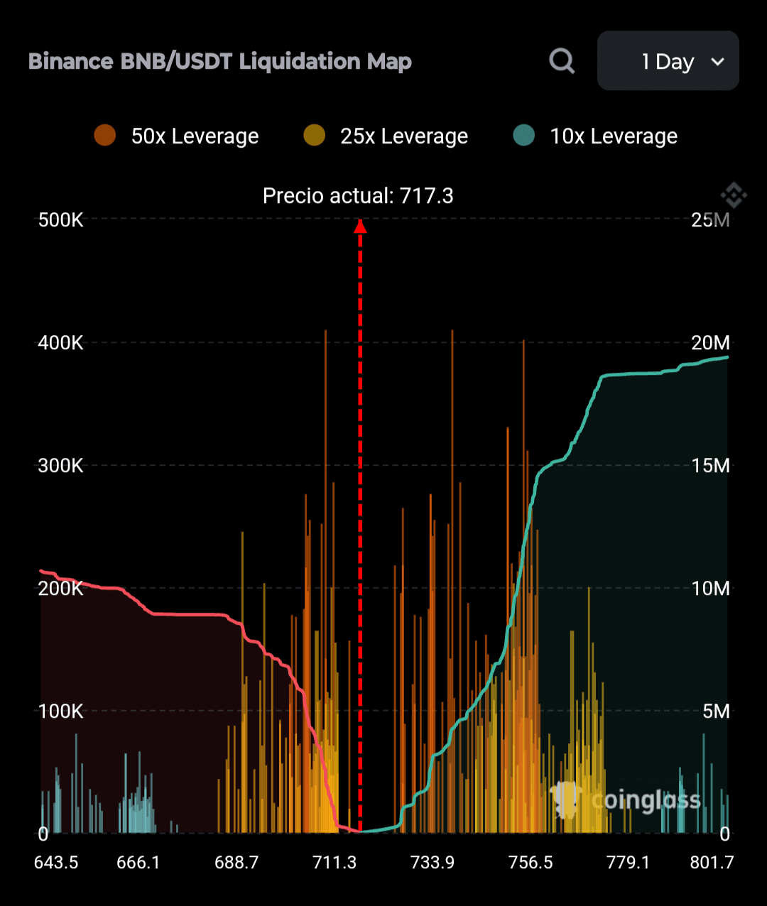 Il prezzo attuale ($ 717,3) si trova in un'area in cui un gran numero di ordini di liquidazione sono concentrati al di sotto di $ 711,3 (supporti). Ciò indica che i venditori potrebbero cercare di rompere questa zona per innescare liquidazioni di posizioni lunghe.