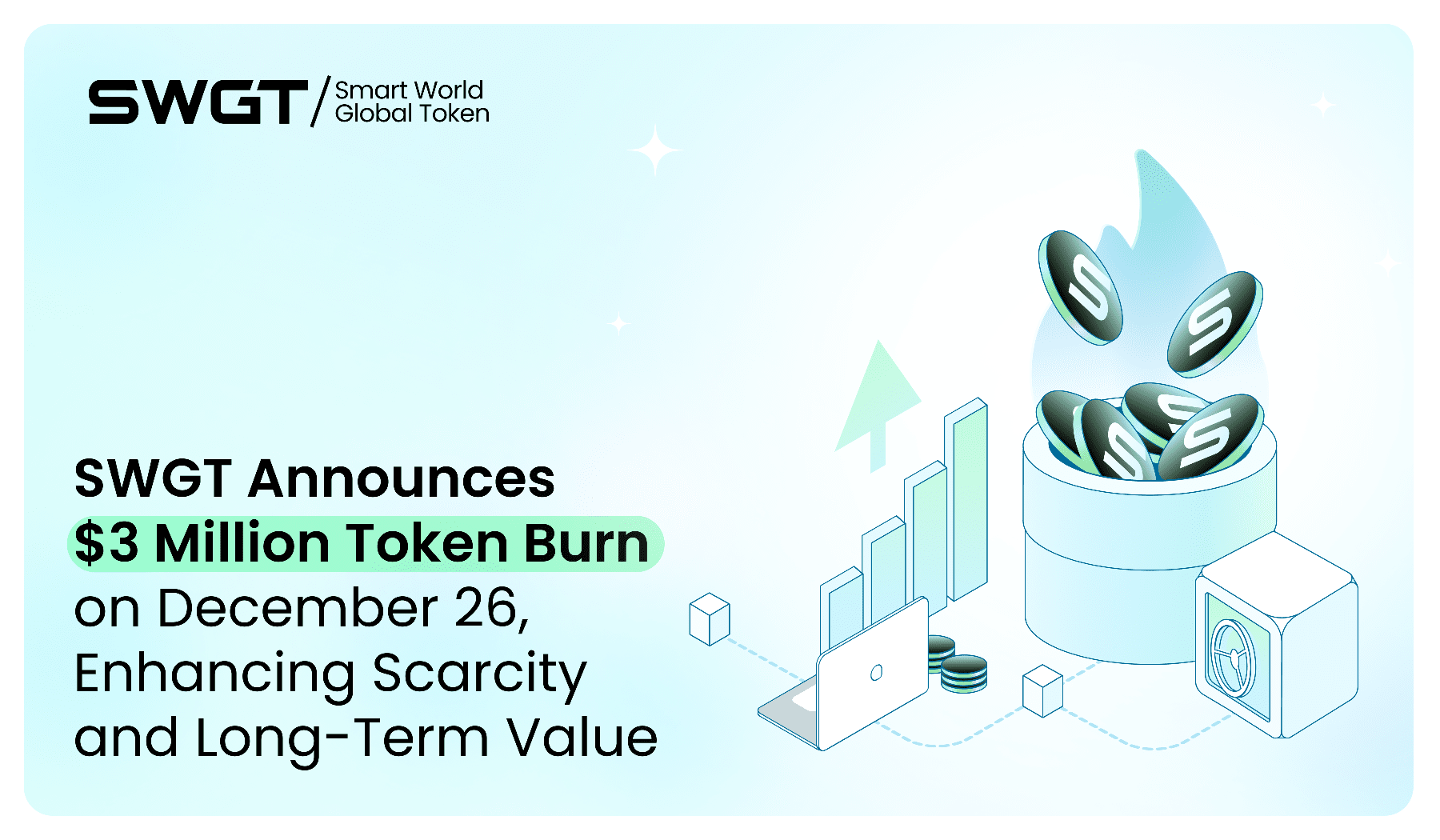 Con un'offerta totale massima di 1 miliardo di token, questo burn rafforza l'impegno di SWGT a creare valore introducendo scarsità. Riducendo il numero di token disponibili, SWGT mira a rendere il token più forte sia per gli investitori attuali che per quelli futuri.