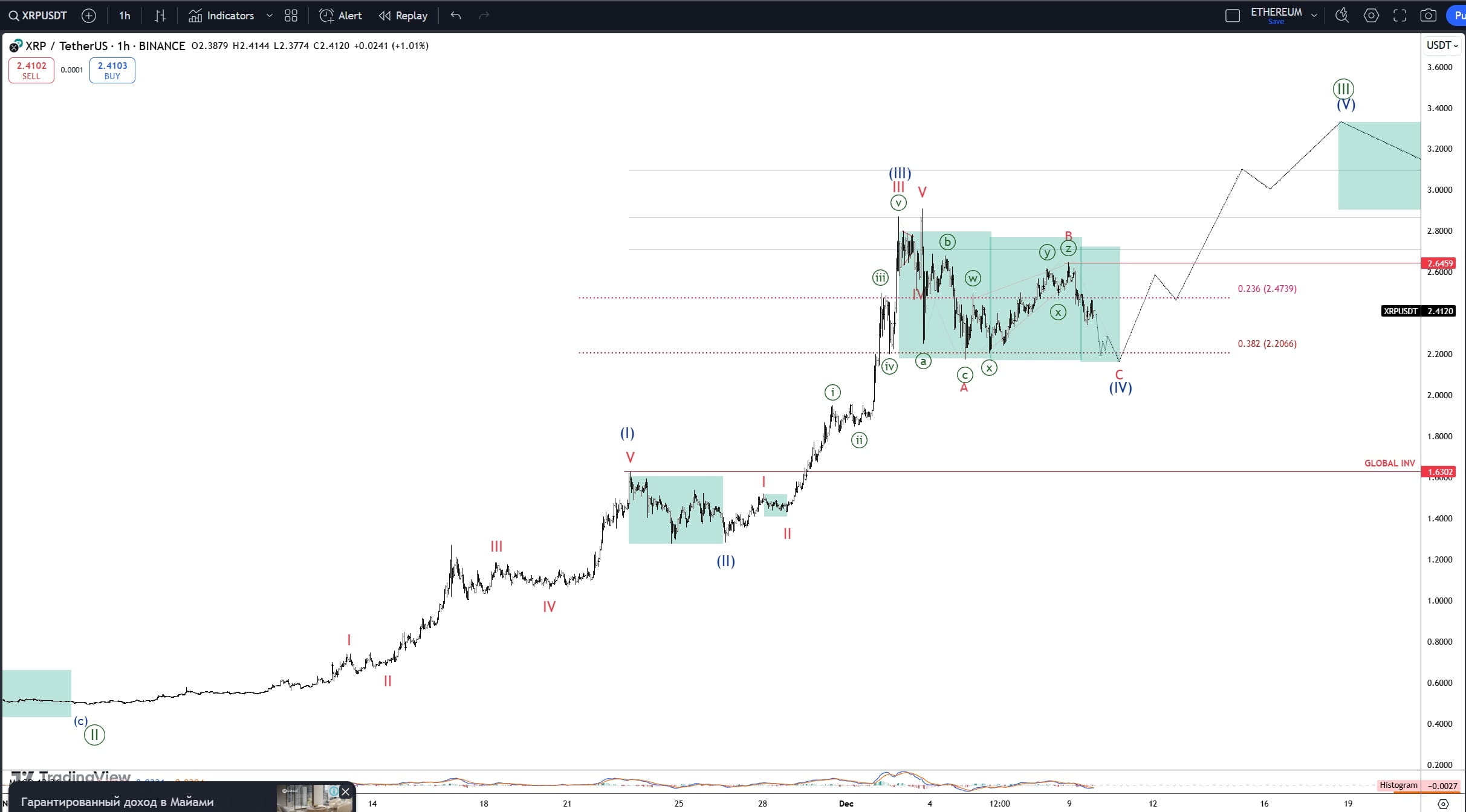 $XRP - Nei prossimi giorni il prezzo sarà in una breve tendenza ribassista verso l'obiettivo più vicino 2.2000, poi saranno inclusi due scenari di sovrapposizione delle onde: