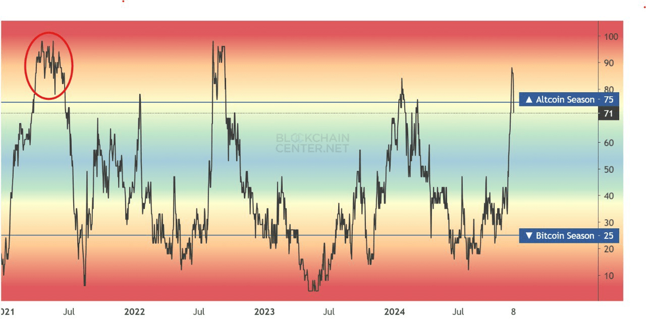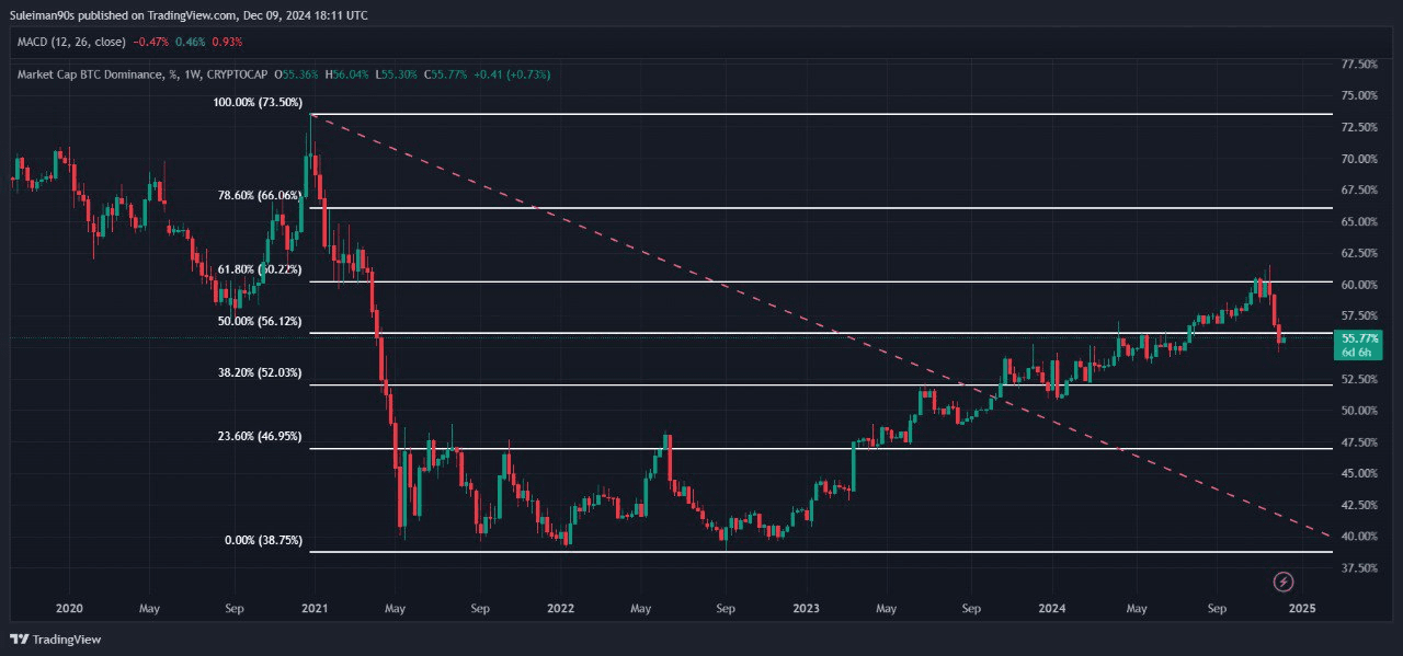 Se l’indice scende e rompe il supporto del 55%, l’attuale stagione delle valute alternative continuerà con un’altra grande e positiva ondata di rialzo.