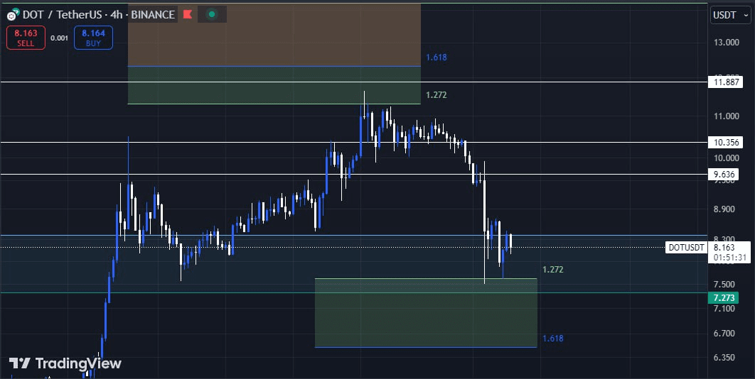 Come molte correzioni di mercato, Dot rappresenta un'opportunità senza precedenti per consolidare gli importanti supporti di queste ultime settimane rialziste. Identifichiamo come il prezzo possa trovarsi in una zona di indecisione/laterale, una fascia di prezzo in cui l'acquisto e la vendita sono molto più costanti, formando così un supporto molto più forte con proiezioni di aumento del prezzo. Questi supporti sono: