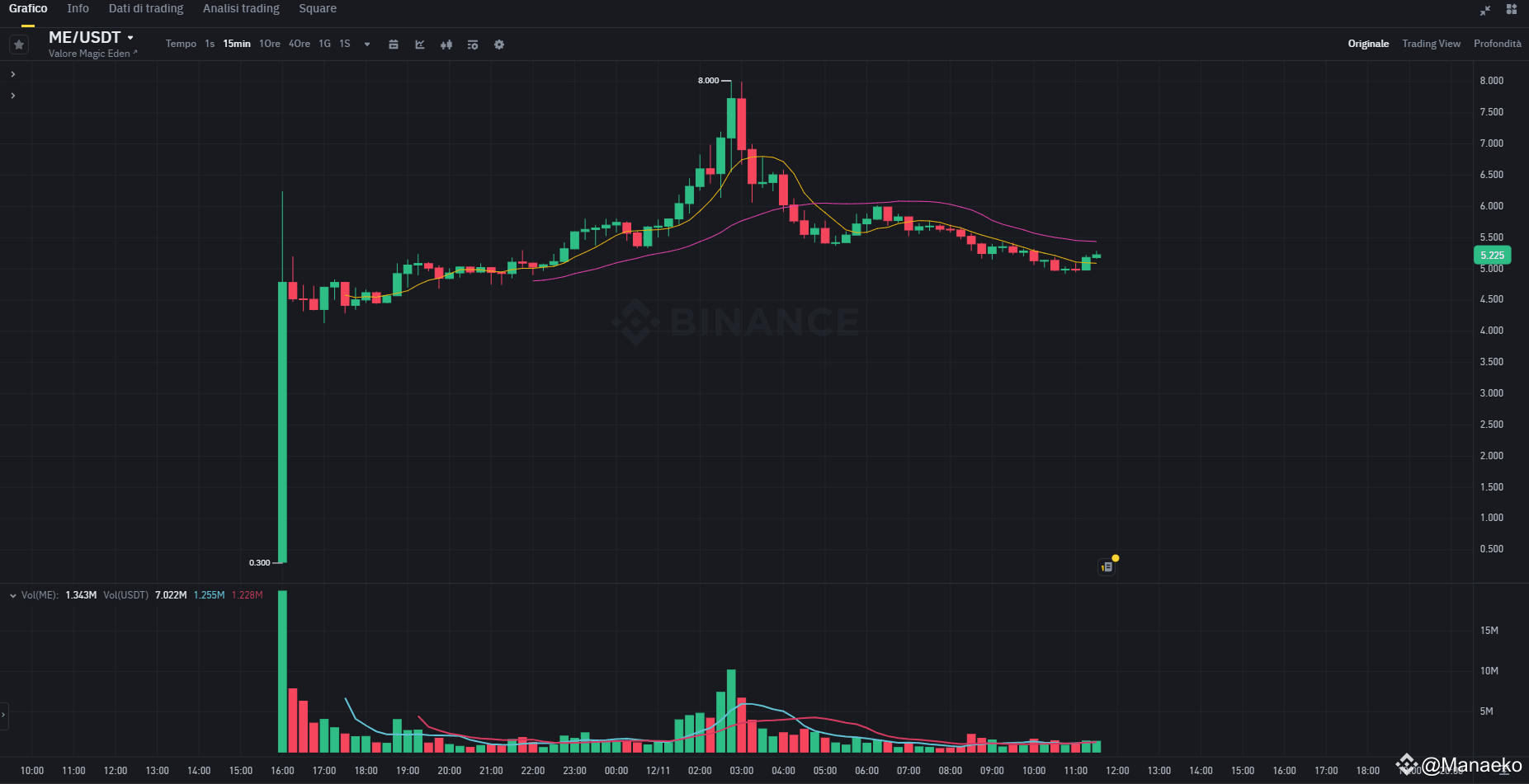 Analizzando il grafico aggiornato e il comportamento del prezzo, possiamo trarre alcune conclusioni sull’orientamento attuale di Magic Eden (ME/USDT):