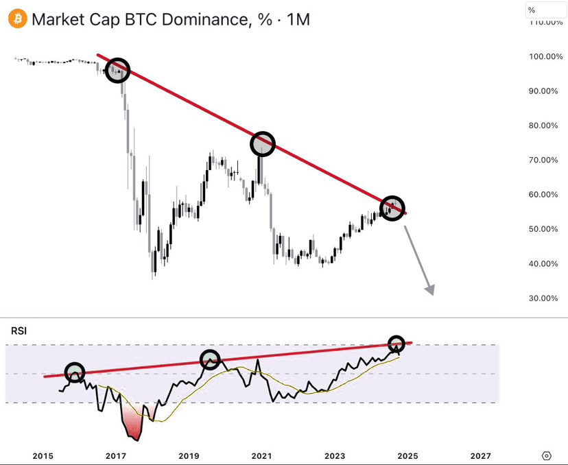 ✧ Si può anche vedere che BTC.D sta iniziando a formare un movimento di ribasso