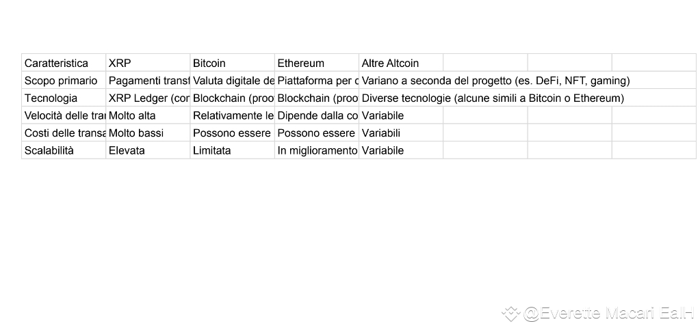 XRP, la criptovaluta associata a Ripple, si distingue dalle altre principalmente per il suo scopo e la sua tecnologia. Mentre molte altre criptovalute si concentrano sulla creazione di valute digitali decentralizzate, XRP è stato concepito principalmente come un token di pagamento per facilitare le transazioni internazionali.