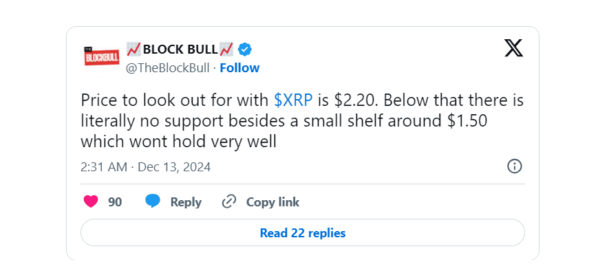 The Block Bull, un noto analista di mercato, prevede #XRP un crollo ai minimi di novembre in mezzo all'attuale incertezza del mercato.