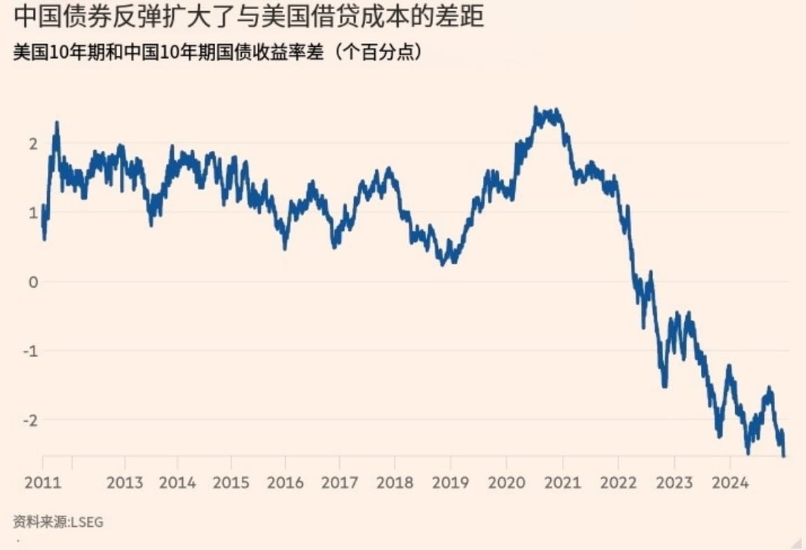 2. La differenza nei costi di prestito tra i titoli di Stato a 10 anni tra Cina e Stati Uniti ha raggiunto il livello più alto in 13 anni (Figura 1)