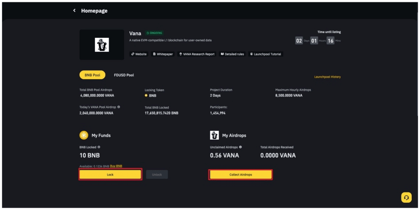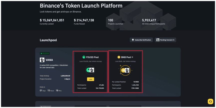 Accedi al Launchpool: Naviga nella sezione Binance Launchpool e seleziona il pool VANA.