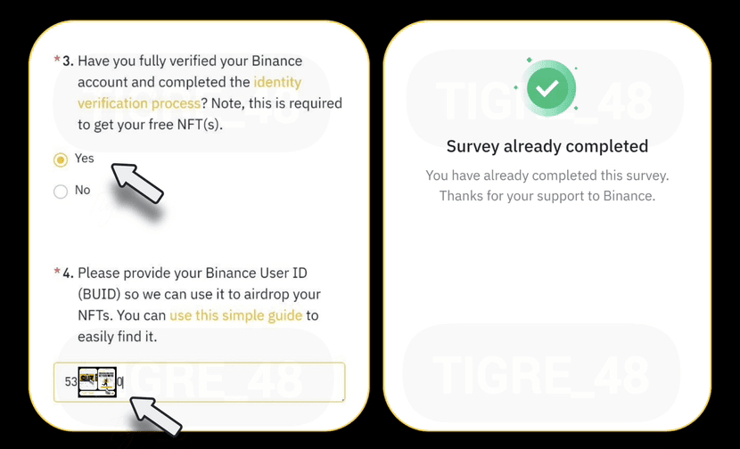 Dopo di che, devi completare alcune domande semplici. Inserisci il tuo numero ID Binance. Una volta fatto questo, sei a posto. Se non sei sicuro di come trovare il tuo numero ID Binance, clicca semplicemente sulle parole evidenziate nel testo (è fornito un semplice guida) e scoprirai come trovarlo.